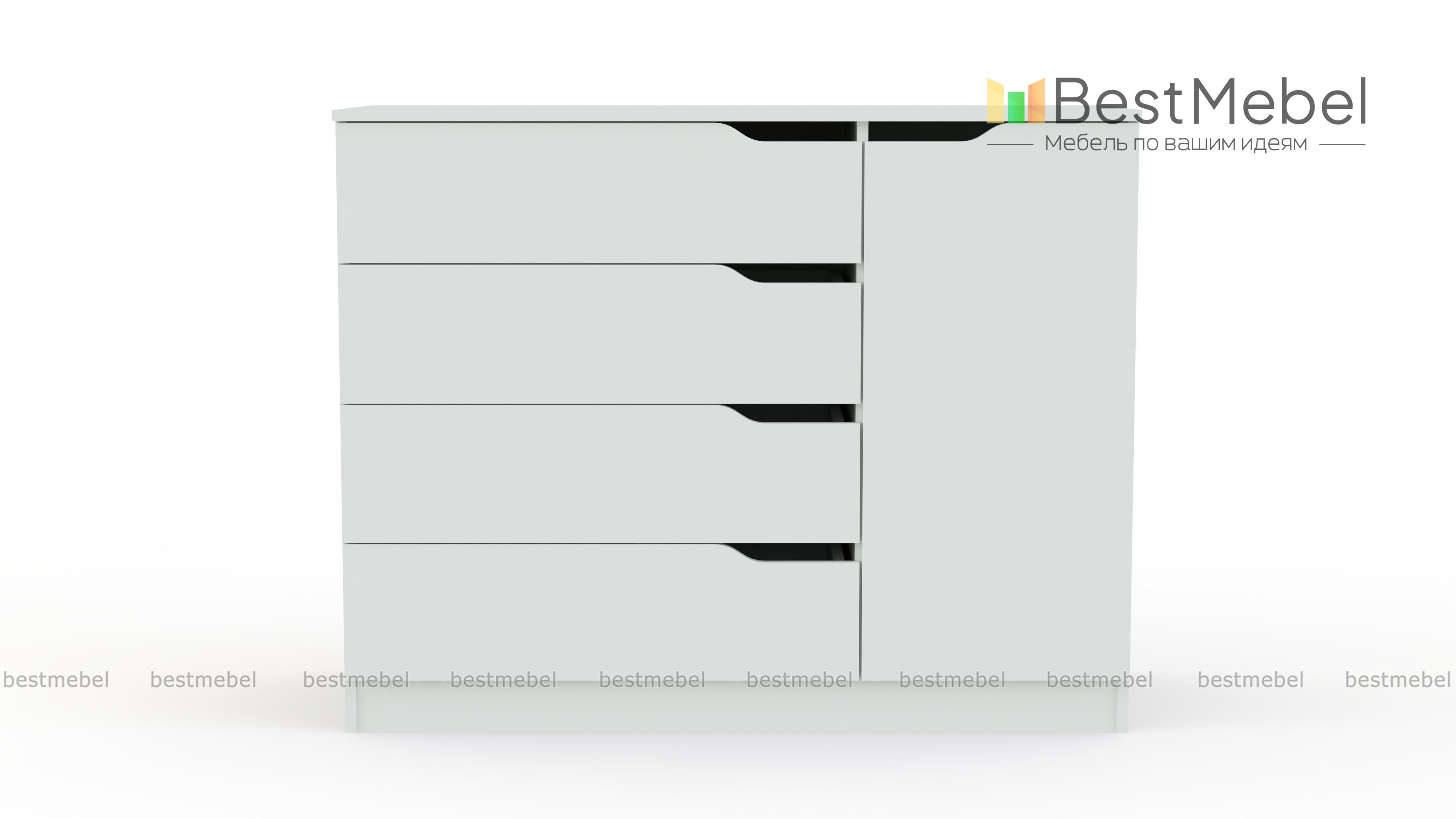 Комод Елисей 120 BMS – универсальная модель в современном стиле, отличный вариант для детской комнаты или спальни. Выполненные в белом цвете фасады легко впишутся в скандинавский или лофт-интерьер. Вместительный комод оборудован четырьмя просторными выдвижными ящиками и распашным отделением с полкой. Дверцы без ручек дополнены функциональными вырезами, эргономичными и безопасными. Купить комод Елисей 120 BMS, подобрав оптимальное цветовое решение, вы сможете в нашем интернет-магазине.