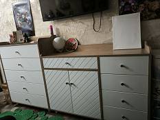 Комод отличный. Всего оба изделия - 2 метра. Конкретно мы заказали высокий комод шириной 80 см, а пониже - 1,20 м. Также дополнительно заказали секции для 2-х ящиков, и все ящики и петли с доводчиками. Комоды шикарные. Сборку брали у партнёров магазина - выше всяких похвал. Надеемся, прослужит долго.