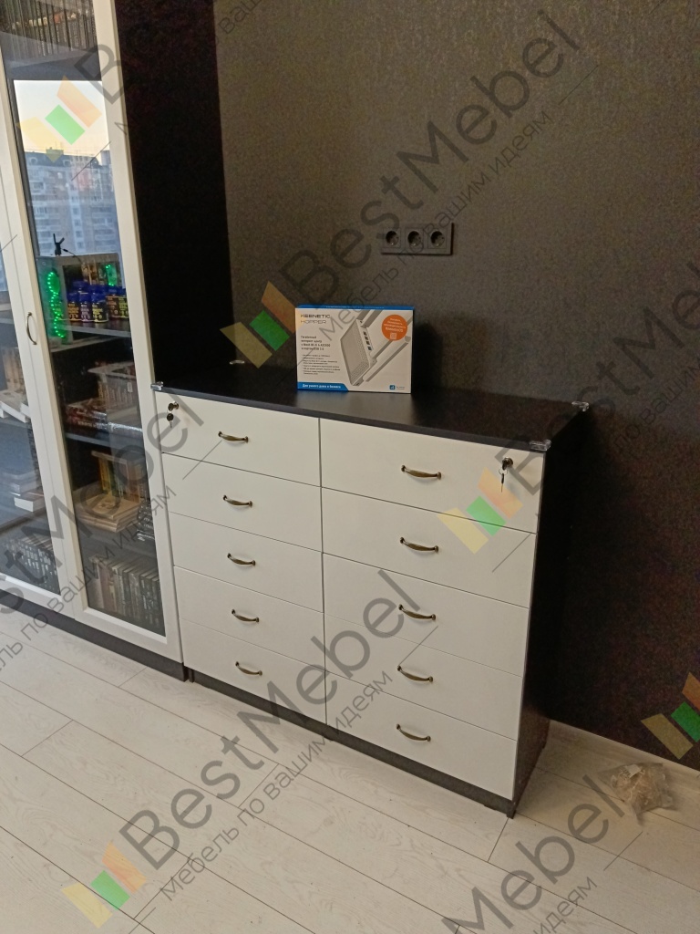 Комод Прага-2.10 BMS – это элегантная современная классика для спальни, гостиной или прихожей. Оборудованный пятью выдвижными ящиками с парными ручками-рейлингами и широкой столешницей, комод подходит для размещения одежды, домашнего текстиля, всевозможных бытовых мелочей и декоративных предметов. Белоснежный фасад с рамочной фрезеровкой красиво контрастирует с корпусом в темных древесных тонах. Купить комод Прага-2.10 BMS вы сможете на сайте нашего интернет-магазина.
