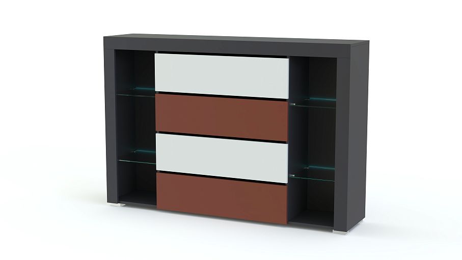 Комод Симпл 156 BMS дополнит интерьер современной гостиной ярким акцентом. Многофункциональная модель оборудована четырьмя выдвижными ящиками для домашнего текстиля и бытовых мелочей и открытыми стеклополками для книг, посуды, предметов декора. Стильной особенностью комода станут цветные матовые фасады и деликатная светодиодная подсветка полок. Купить комод Симпл 156 BMS и сделать зону отдыха уютной и комфортной вам всегда поможет наш интернет-магазин.