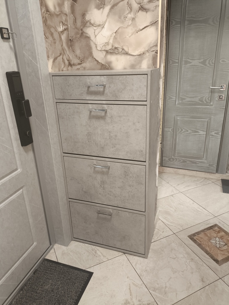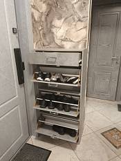 Обувница нам понравилась, сделали все быстро и по нашим размерам ( поэтому видимо есть небольшой зазор так как размеры нестандартные). Единственное что внутренняя фурнитура пластиковая и поэтому чуть-чуть хлипковата. А так большое спасибо, единственная фирма которая смогла сделать обувницу по индивидуальным размерам)