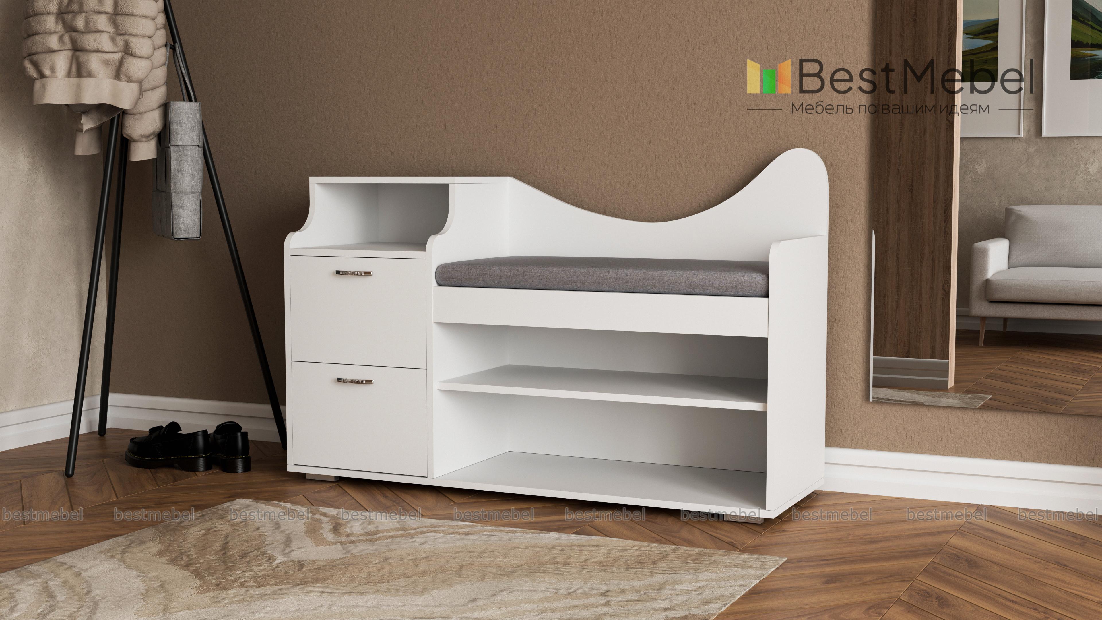 Обувница Луиза 2 BMS привлекает элегантным и функциональным дизайном. Комбинированная модель объединила открытые обувные полки, два выдвижных ящичка для хранения мелочей, нишу и комфортное сиденье с мягкой обивкой в ткани. Эффектный вид обувнице, выполненной в насыщенных темных тонах, придают фигурно вырезанная спинка и скругленные боковины. Купить обувницу Луиза 2 BMS и рационально организовать пространство вам поможет наш интернет-магазин.
