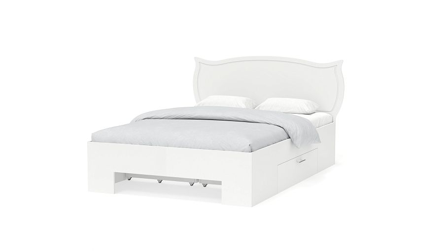 Кровать Роза с ящиками BMS выгодно отличается эффектной простотой и функциональностью. Современная модель в универсальном белом цвете располагается на широких устойчивых опорах, оборудована просторным за счет отсутствия спинки в изножье спальным местом. Фигурно вырезанная, высокая спинка изголовья декорирована элегантной фрезеровкой. Купить кровать Роза с ящиками BMS для стильного спального интерьера вы всегда сможете в нашем интернет-магазине.