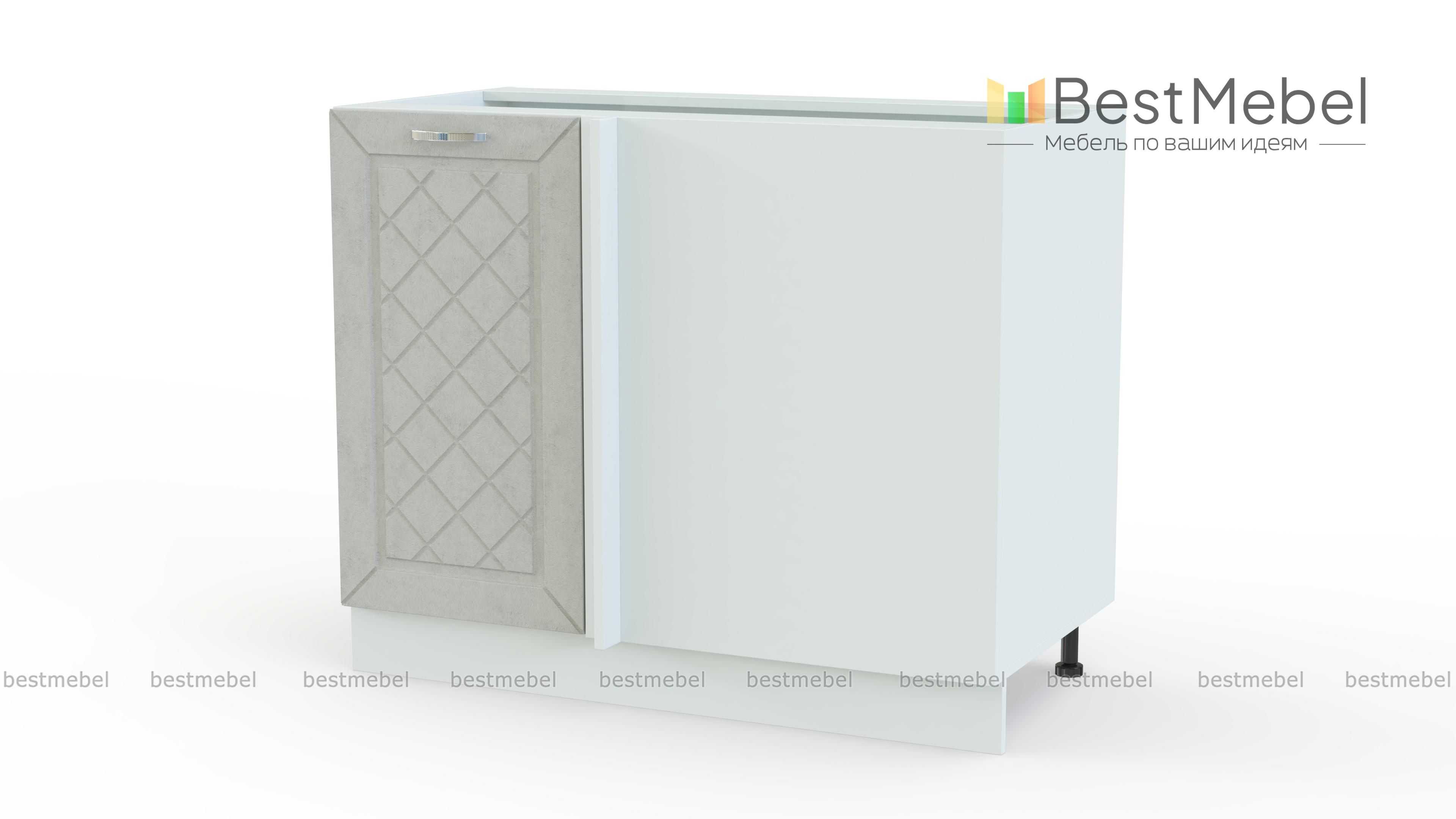 Шкаф нижний угловой прямой 1 дверь Агава BMS предназначен для стыковки модулей левого и правого крыла кухонного гарнитура. Модель отличается вместительностью и оборудована с фронтальной стороны открытой секцией и распашной глухой дверцей. Просторное внутреннее отделение с полкой удобно для хранения продуктов, габаритной посуды и множества мелочей, а дополнительной рабочей поверхностью станет широкая столешница. Фасад выполнен в едином для всей серии классическом стиле. Купить шкаф нижний угловой прямой 1 дверь Агава BMS вы сможете быстро и просто в нашем интернет-магазине.