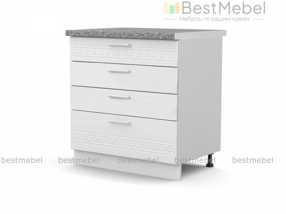 Тумба напольная 4 ящика Греция BMS – оригинальная широкая модель для меблировки кухни. Уместная и в качестве дополнения к комплекту, и самостоятельно, тумба отличается изящным дизайном – матовые фасады светлых тонов декорированы орнаментом. Разместить под рукой необходимые мелочи помогут четыре просторных выдвижных ящика, а удобной рабочей поверхностью станет столешница. Купить тумбу напольную 4 ящика Греция BMS и сэкономить время на поиски нужной вещи вам всегда поможет наш интернет-магазин.