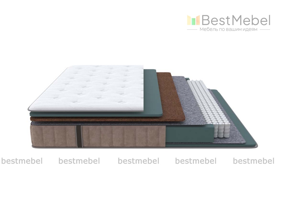 Состав: Меморикс 2см \ Ортофом (ППУ) 2см \ Ортофом (ППУ) высокоэластичный 5 см \ Спанбонд \ EVS620 16см \ Спанбонд \ Ортофом (ППУ) повышенной жесткости 2см \ Короб Ортофом (ППУ).