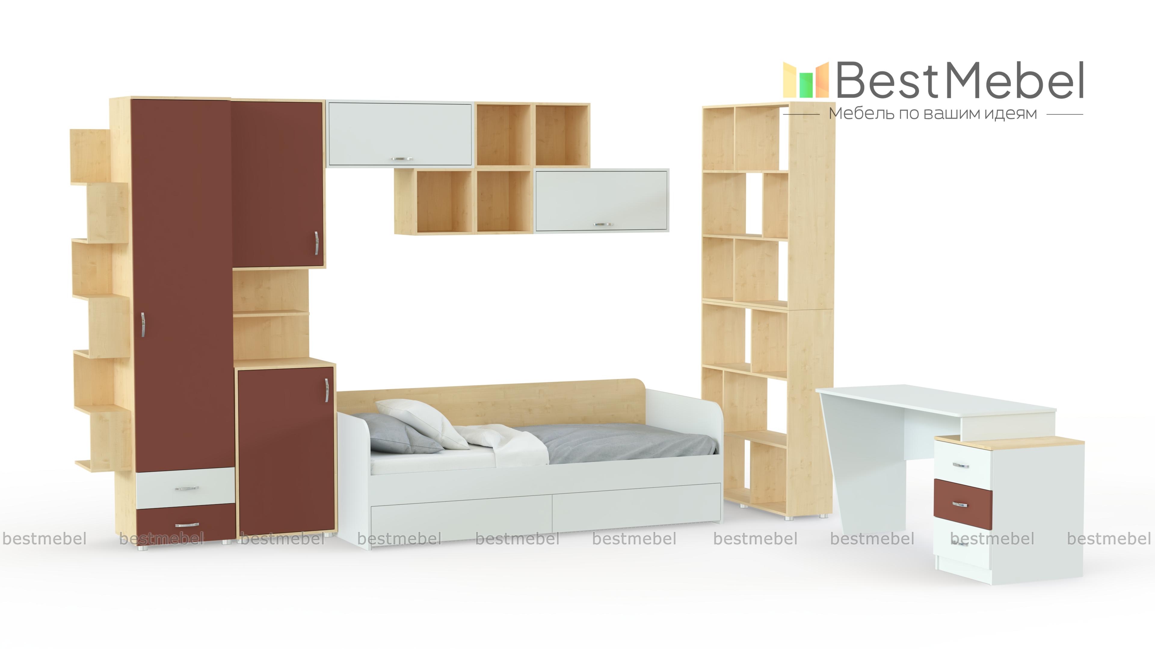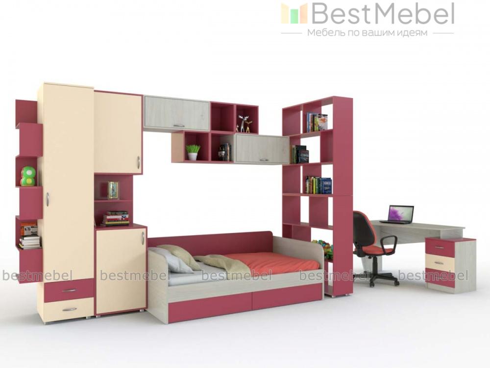 Детская Дарина В-48 BMS отлично подходит для меблировки комнаты девочек, сочетая геометричный дизайн и интересное цветовое решение в контрастной гамме с древесным корпусом. В комплект входят кровать-софа с бельевыми ящиками в основании, письменный стол с тумбой, комбинированные шкафы для книг и одежды и оригинальные открытые полки, которые могут быть как навесными, так и напольными. Купить детскую Дарина В-48 BMS и создать комфортный и запоминающийся интерьер вам поможет наш интернет-магазин.