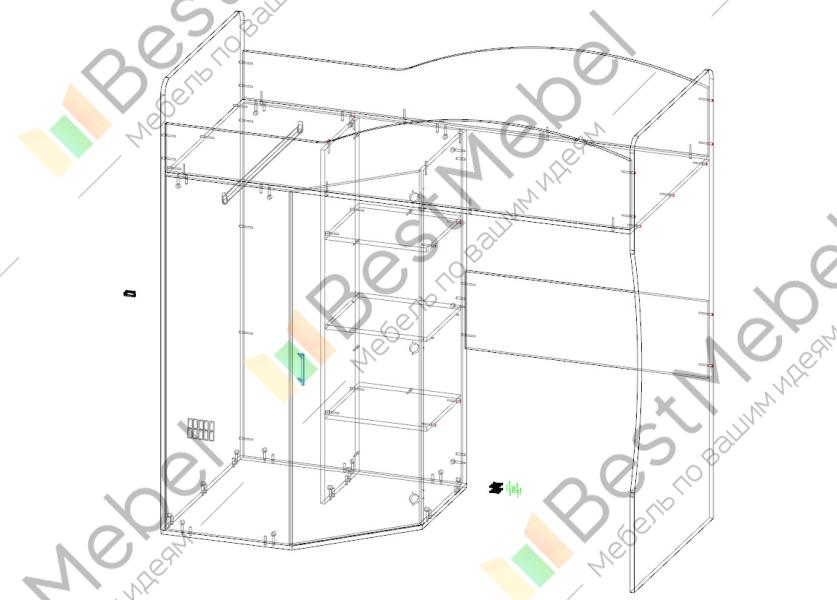 Кровать-чердак угловая Калейдоскоп 3 BMS представляет собой практичную комбинацию комфортного спального места и удобной системы хранения. Кровать второго яруса со скругленными защитными бортиками дополнена находящейся в нижней части просторной нишей и угловым распашным шкафом. Особенно просторный за счет трапециевидной формы, шкаф оборудован отделением со штангой и бельевыми полками. В оформлении сочетаются светлые древесные поверхности и белые элементы. Купить кровать-чердак угловую Калейдоскоп 3 BMS приглашаем в наш интернет-магазин.