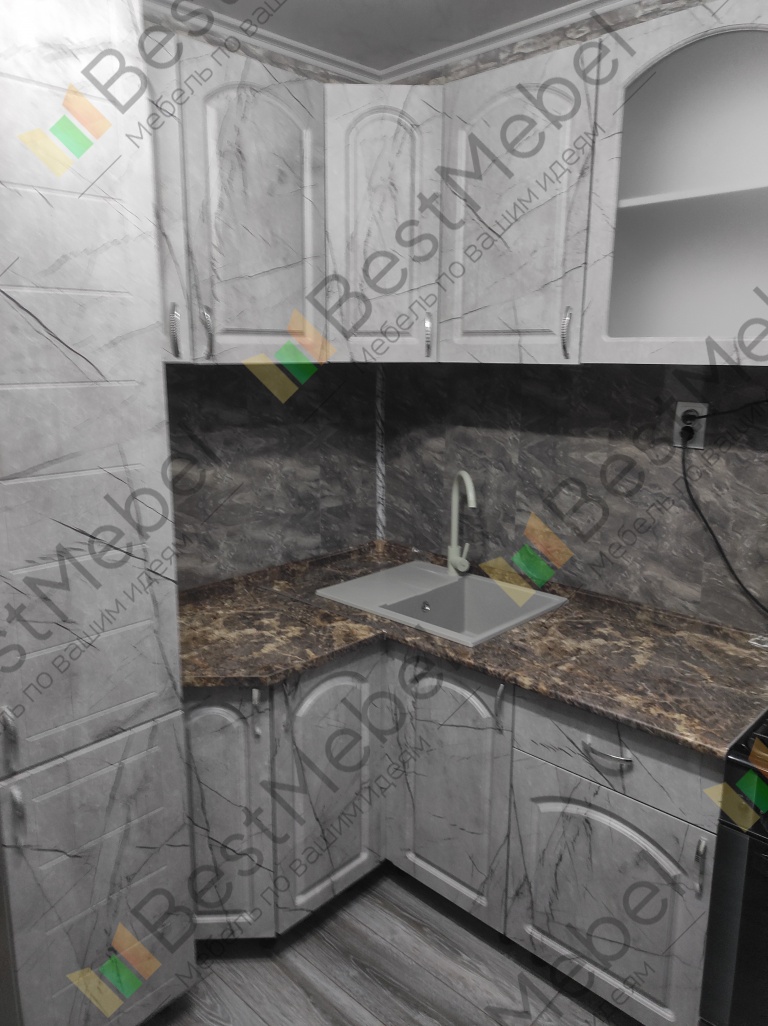 Небольшая элегантная кухня Классика BMS – это сочетание классического дизайна и современных тенденций. Широкая гамма оттенков позволит подобрать оптимальные для вашего интерьера и легко вписать стильный угловой комплект в помещение. Фасады, выполненные из прочных, влагостойких материалов, декорированы фрезеровкой, дверцы посудного шкафа застеклены. Комплект из пяти нижних и шести навесных модулей позволит держать под рукой все необходимое.