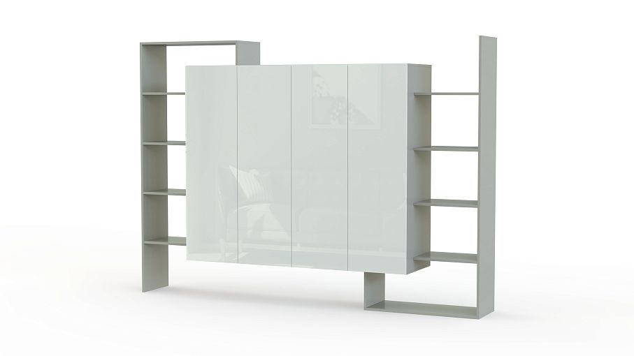 Стеллаж Триша 2.4 BMS дополнит просторный современный офис оригинальной системой хранения. Крупногабаритная креативная композиция объединила четырехдверный распашной шкаф и просторные открытые полки для папок с документами, книг, декоративных предметов и канцелярских принадлежностей. Сплошной фасад в белом глянце эффектно сочетается с корпусом серых тонов. Купить стеллаж Триша 2.4 BMS по доступной цене вы сможете в нашем интернет-магазине, подобрав цветовое решение.