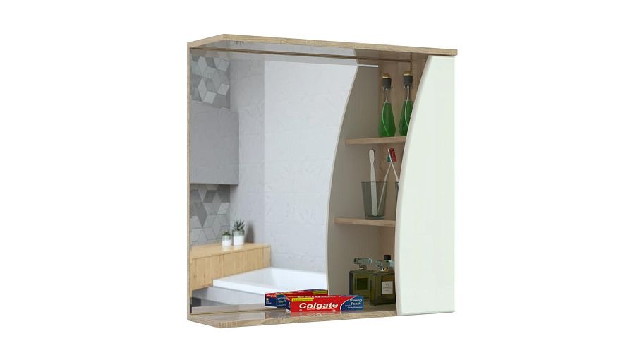 Шкаф с зеркалом в ванную Долли 2 BMS – это большое зеркало, комфортное для ухода за собой, и удобная система хранения. Подвесная модель оборудована широкой открытой полкой для мелких вещей и боковым шкафчиком с распашной скругленной дверцей. Белый фасад шкафа отличается износостойкостью, простотой ухода и внесет в интерьер ванной комнаты яркий акцент. Купить шкаф с зеркалом в ванную Долли 2 BMS и эффективно использовать пространство вам поможет наш интернет-магазин.