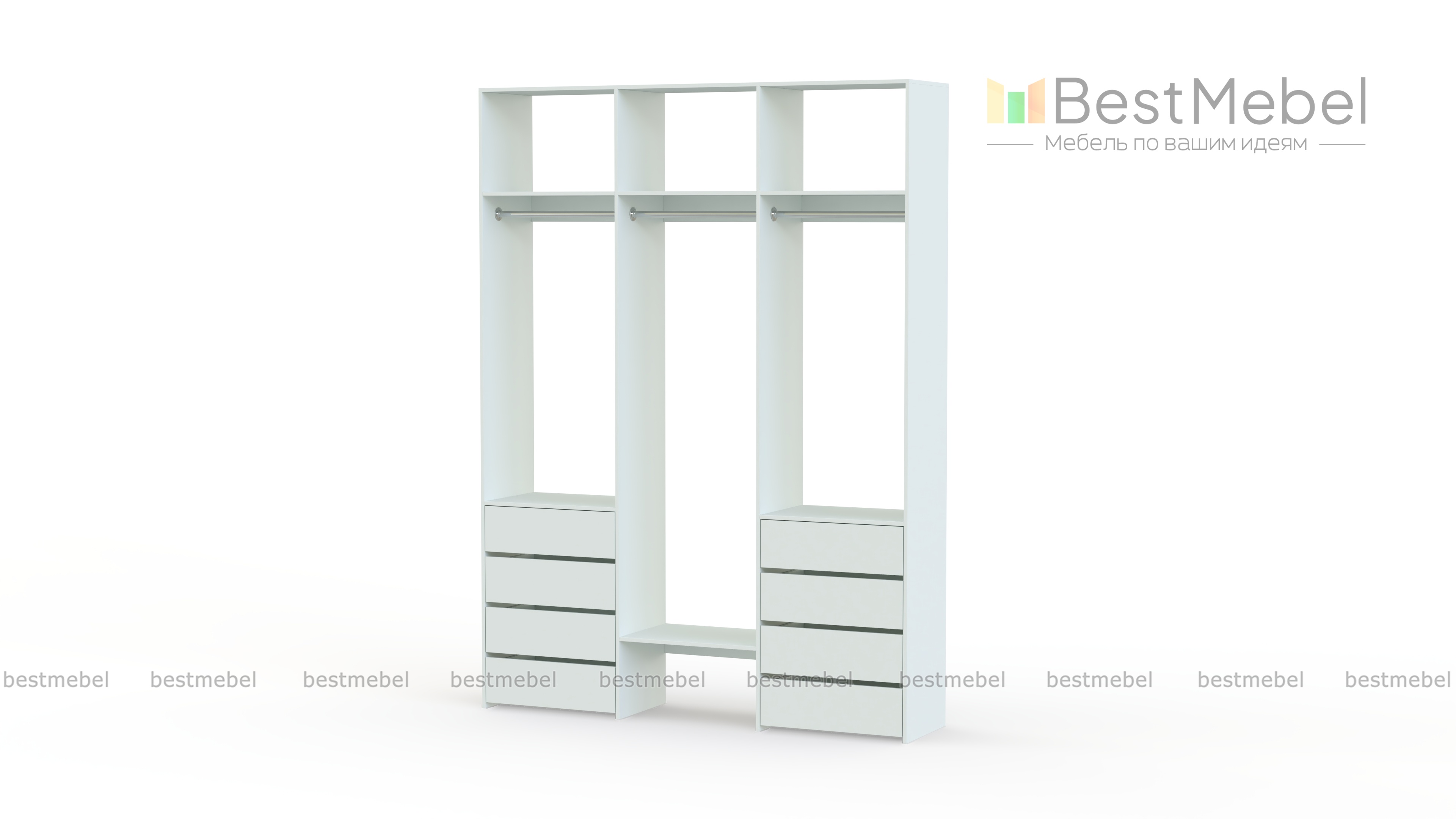 Стеллаж для одежды Мирта 9 BMS поможет вам хранить в порядке одежду, коробки с обувью и всевозможные аксессуары. Система хранения стеллажа включает в себя три вместительные полки сверху, три платяные штанги и восемь выдвижных ящиков, расположенных в два ряда. Прочная конструкция из ламинированной плиты прослужит долго, сохраняя эстетичный внешний вид.