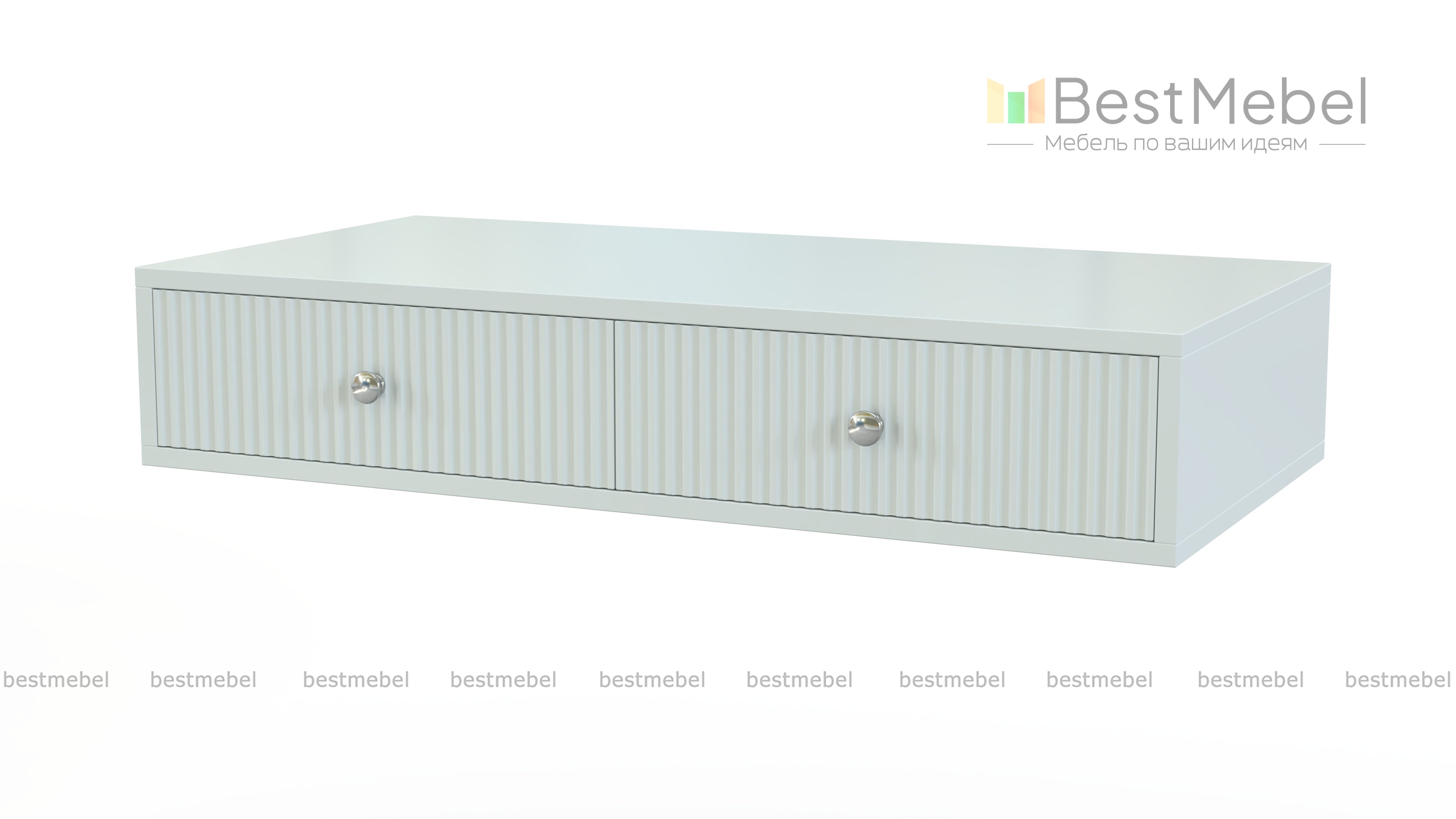 Тумба Бетти 14 BMS сочетает в себе функции классической тумбы, туалетного и рабочего столика. Благодаря навесной конструкции вы сможете закрепить тумбу на любой удобной высоте и разместить зеркало, ноутбук, предметы декора и необходимые мелочи. Фасады двух выдвижных ящиков имеют эффектный вертикальный рельеф, придающий дизайну особую выразительность.