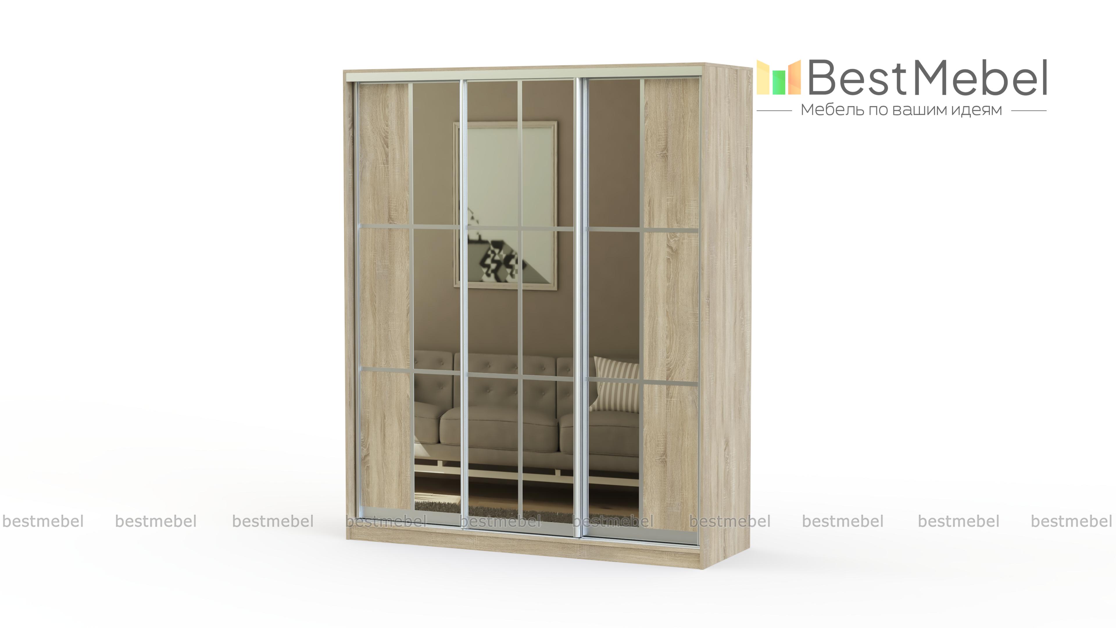 Благородный и стильный шкаф-купе Аристократ-15 будет хорошим украшением Вашей квартиры. Широкое зеркало по центру хорошо сочетается с оригинально оформленными боковыми фасадами. Наличие бельевых и платяных отделений позволит сложить все Ваши необходимые повседневные вещи. В нашем интернет-магазине Вы можете сами выбрать необходимый Вам цвет и размер корпуса и фасадов. Если эта модель Вам понравилась, Вы можете купить ее недорого у нас.