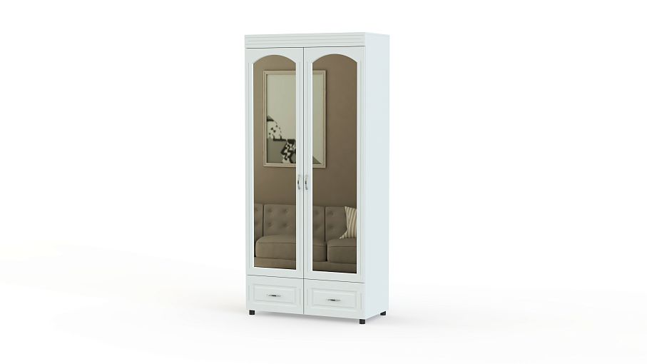 Распашной шкаф Элизабет К 3 BMS сочетает в себе достоинства классических и современных моделей. Высокий двухдверный шкаф оборудован платяным отделением со штангой и дополнен двумя выдвижными ящиками для мелочей в основании. Фасад с арочными зеркалами выполнен в светлых тонах и декорирован фрезеровкой. Купить распашной шкаф Элизабет К 3 BMS для меблировки спальни, гостиной или прихожей вы всегда сможете в нашем интернет-магазине.