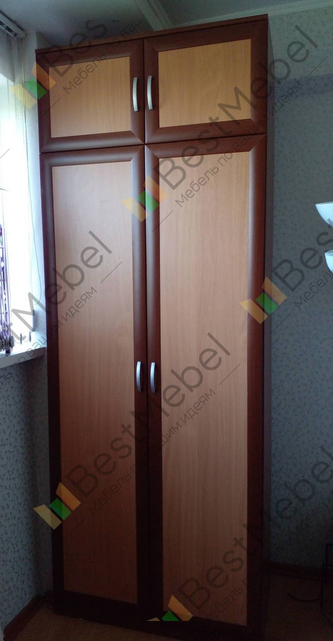 В нишу в квартиру нужен был шкаф точно по размеру. Так как в итоге почти всю мебель в комнаты брали тут на фабрике (очень уж хорошо получается все добротное. в одном стиле, по размерам и наполнению меняется по твоему желанию), то и этот шкаф брали тут. Специально не купе, и не зря - много петель, вместительные антресоли. А рамка и ругой цвет (шимо темный)очень хорошо вписали цвет. Размеры сами называли, можно было на 5 см повыше. Ручки стандарт ужас, поменяли по совету менеджера на очень удобные. При заказе попросила выслать на согласование эскиз. потом еще 3 раза с мамой высоту антресоли меняли ))))За пол года (включая зиму) никаких видимых нареканий, наоборот, только хорошие впечатления. Очень легко подобрали тумбу и коврик по цвету, легко сочетаются.