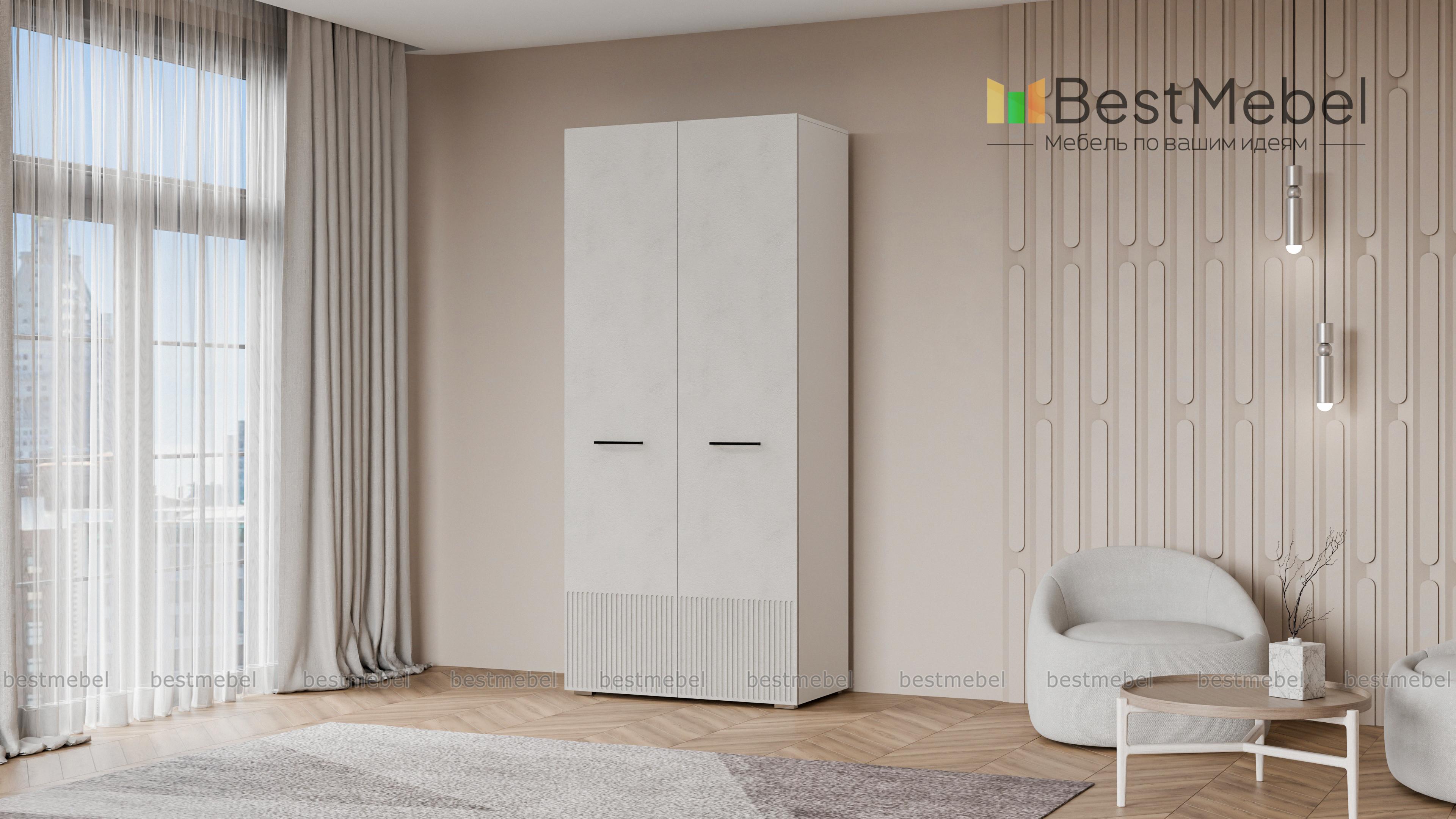 Шкаф распашной Декарт 2 BMS поможет удобно расположить повседневные вещи даже при малом метраже. Система хранения компактной двухдверной модели включает в себя штангу для одежды и расположенную сверху полку для коробок и других габаритных предметов. Фасад в цвет корпуса выполнен из МДФ и оформлен стильным рельефом, поперечные ручки-скобы добавляют стильный акцент. Купить шкаф распашной Декарт 2 BMS в любом размере и оттенке из нашего каталога приглашаем на сайт интернет-магазина.