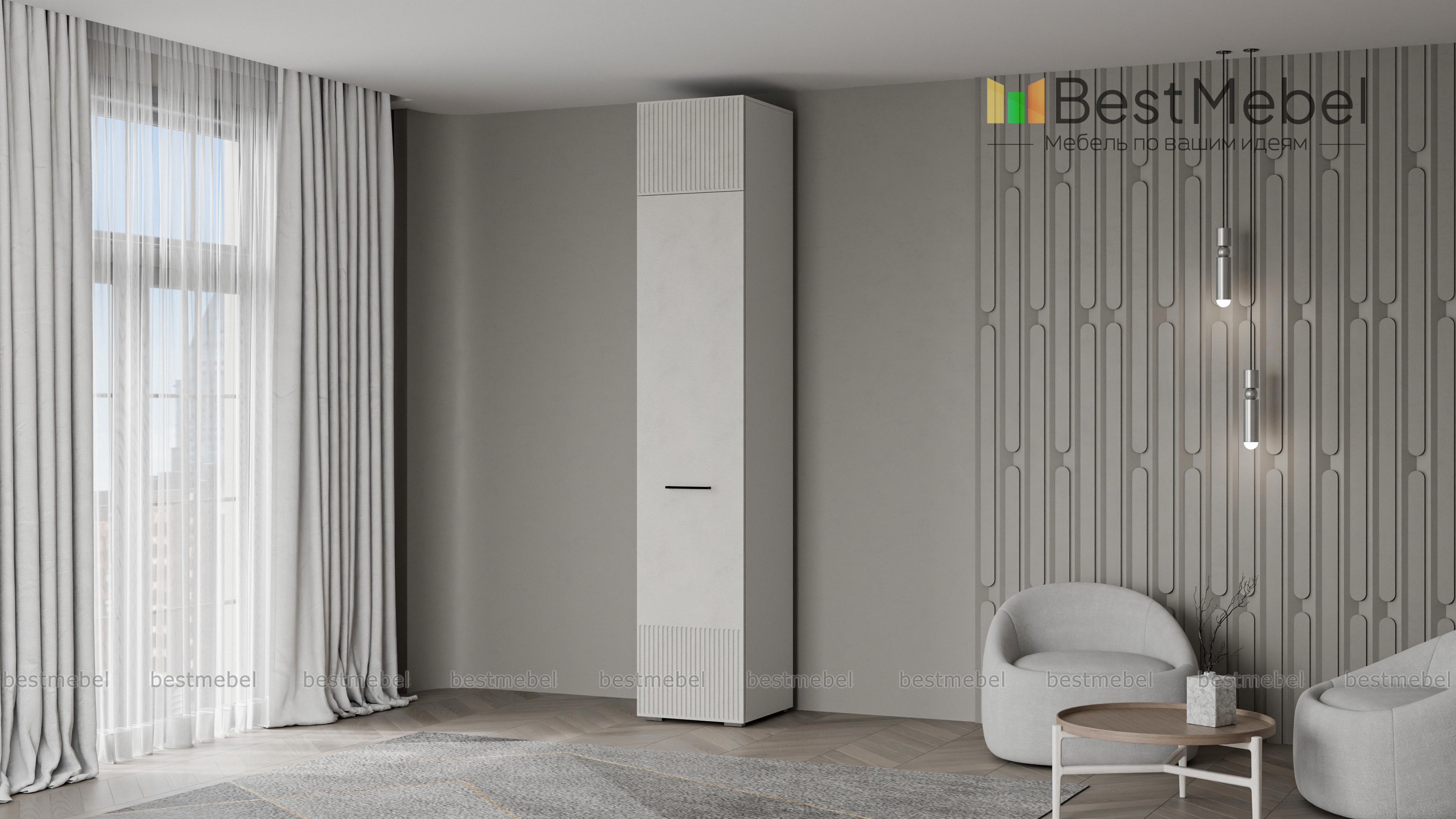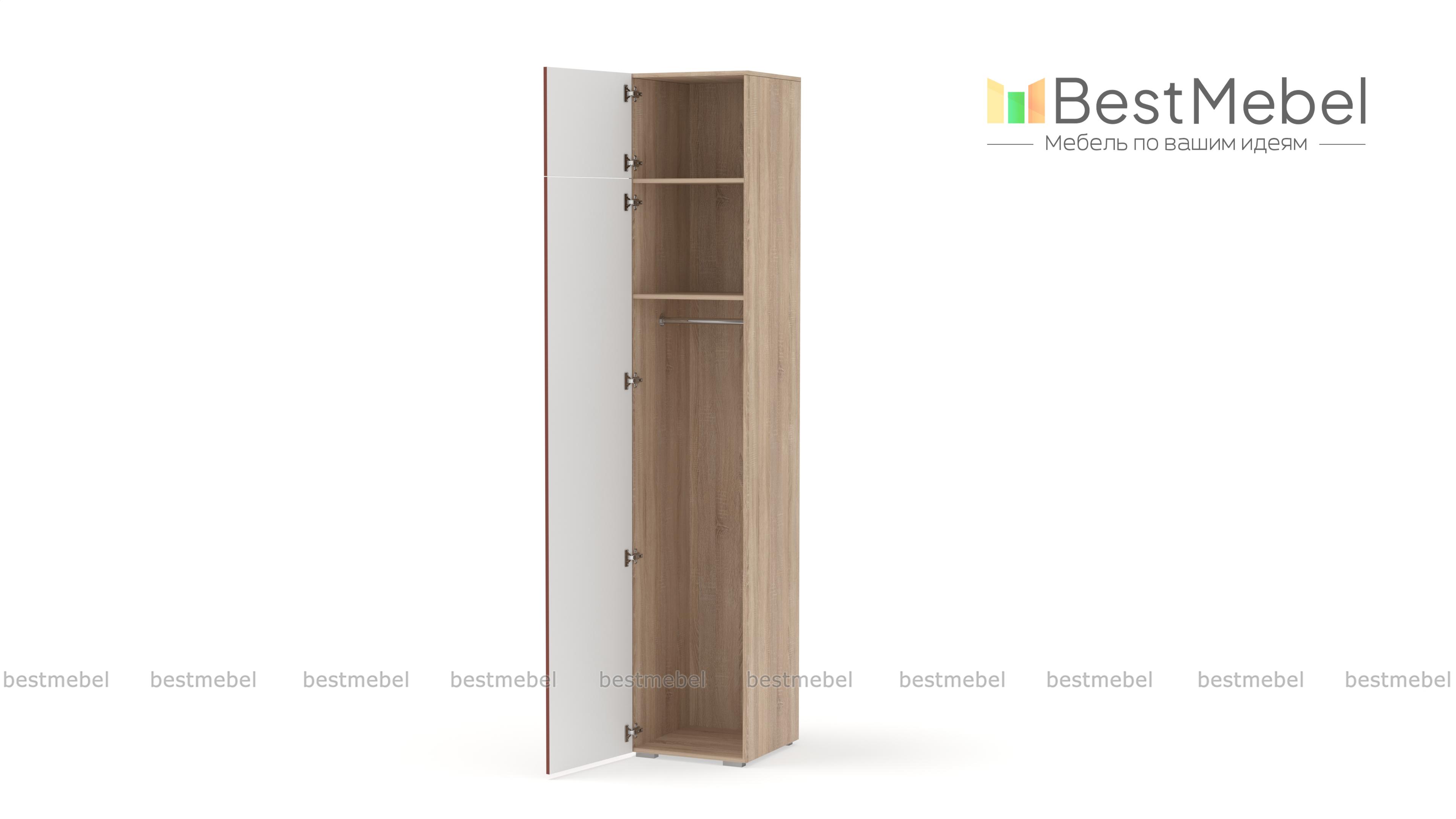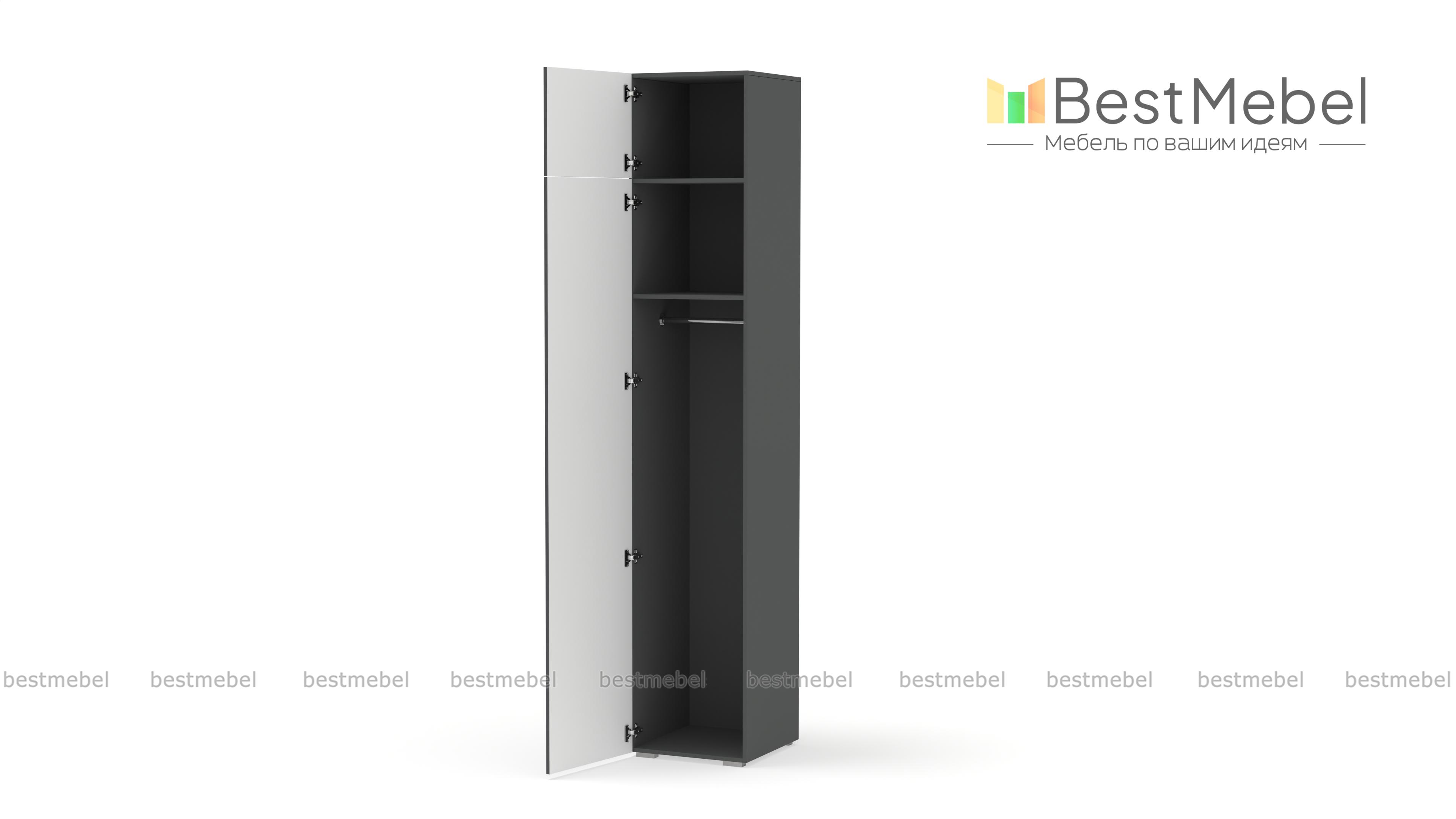 Шкаф распашной Декарт 7 BMS с одной дверцей и антресолью подходит для самых разных помещений. Высокий узкий шкаф с простым и выразительным благодаря фрезеровке дизайном оснащен необходимой для размещения вешалок с одеждой перекладиной и полочкой. Дополнительный отсек сверху значительно увеличивает пространство для хранения. Купить шкаф распашной Декарт 7 BMS вы сможете недорого в нашем интернет-магазине, подобрав подходящие именно вам цвета и размеры.