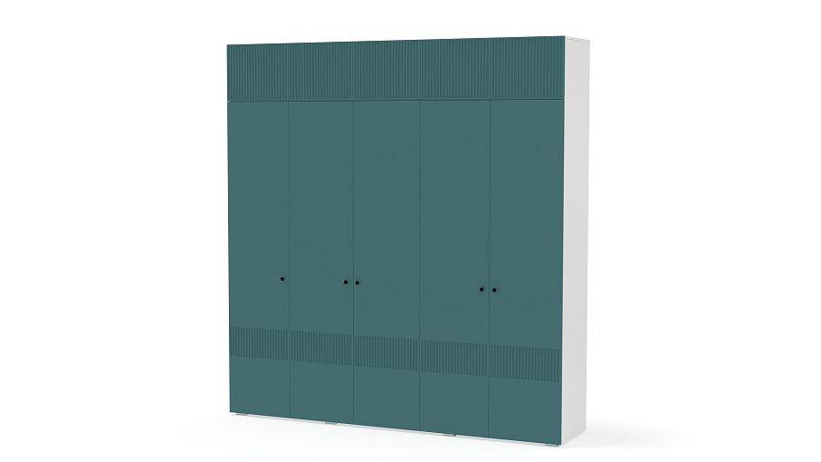 Шкаф распашной Джосс 11 BMS с антресолью — практичное и эстетическое решение для вашего дома. Пространство будет занято до потолка — значит, появится больше места для хранения как повседневного, так и сезонного гардероба. Внутри пятидверного шкафа располагаются две штанги и ряд бельевых полок, а сплошной фасад яркого аквамаринового цвета декорирован стильным рельефом. Купить шкаф распашной Джосс 11 BMS вы сможете на сайте нашего интернет-магазина в необходимом размере и любых оттенках из каталога.