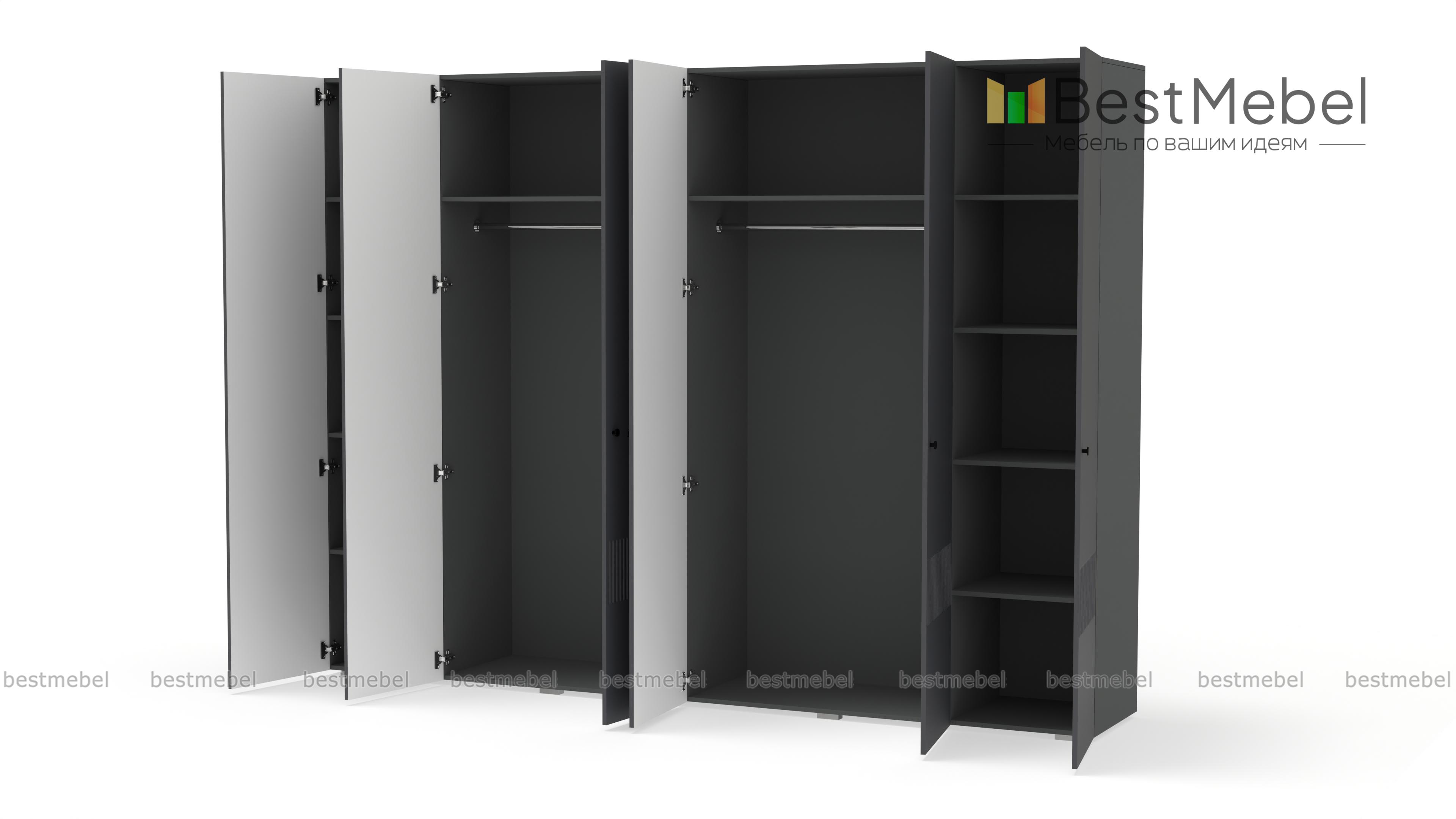 Шкаф распашной Джосс 6 BMS отличается простыми строгими линиями и актуальным декором. Шестидверный шкаф со сплошным цветным фасадом и фрезеровкой прекрасно подходит для спален, прихожих и детских. Два просторных отделения с платяными штангами и верхними полками дополнены однодверными секциями для хранения сложенной одежды и белья. Купить шкаф распашной Джосс 6 BMS вы сможете в нашем интернет-магазине, подобрав размеры, наполнение и подходящую цветовую гамму.