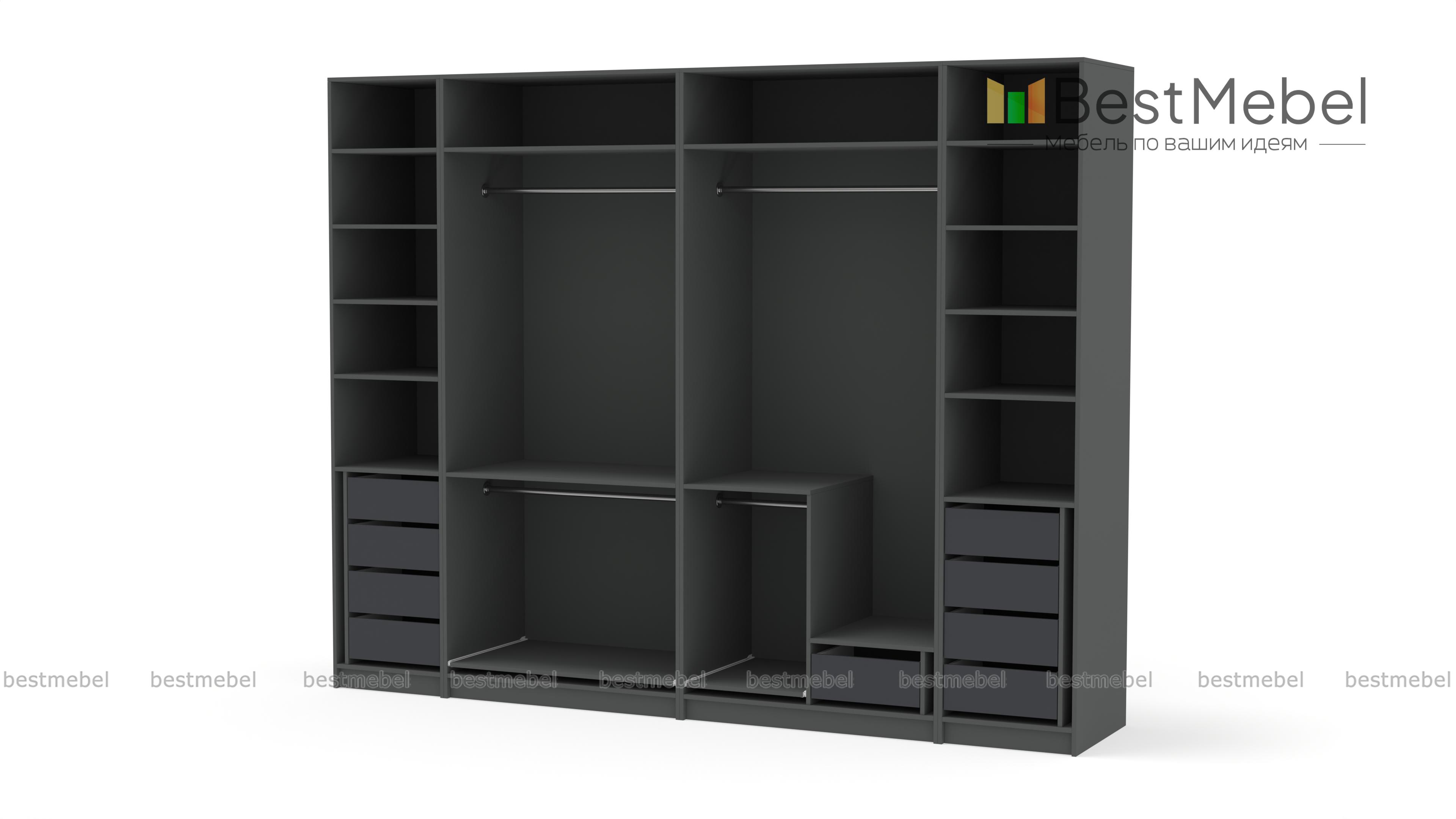 Шкаф распашной Пакс Тисседаль Pax Tyssedal 1, объединивший четыре секции – две двухдверные и две однодверные, вместителен и одновременно эстетичен. Композиция с глухими фасадами, украшенными рамочной фрезеровкой, придаст спальне или прихожей классические черты. В этом многофункциональном гардеробе найдется место для всех ваших вещей, а за счет распашных створок одежда хорошо просматривается. Купить шкаф распашной Пакс Тисседаль Pax Tyssedal 1 вы сможете в нашем интернет-магазине, подобрав цвет по каталогу. Выбирайте мебель в стиле IKEA (ИКЕА) от производителя BestMebelShop!