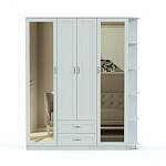 Довольно большая и вместительная модель в классическом стиле. Распашной шкаф Вернисаж представляет собой шкаф из трех частей: боковые части с полками и средняя часть со штангой под одежду на плечиках и с полкой для шляп. Кроме этого, в средней части имеются два выдвижных ящика для нижнего белья. Большие зеркала на дверках шкафа и угловой элемент с декоративными полками делает модель привлекательной. Купить данную мебель можно для спальни, прихожей или коридора.