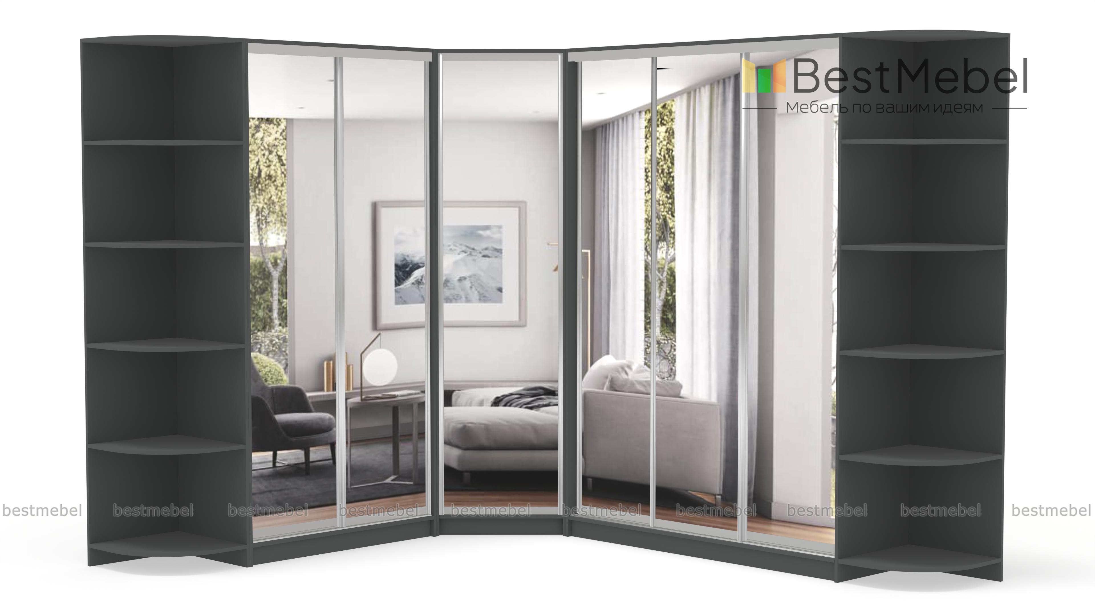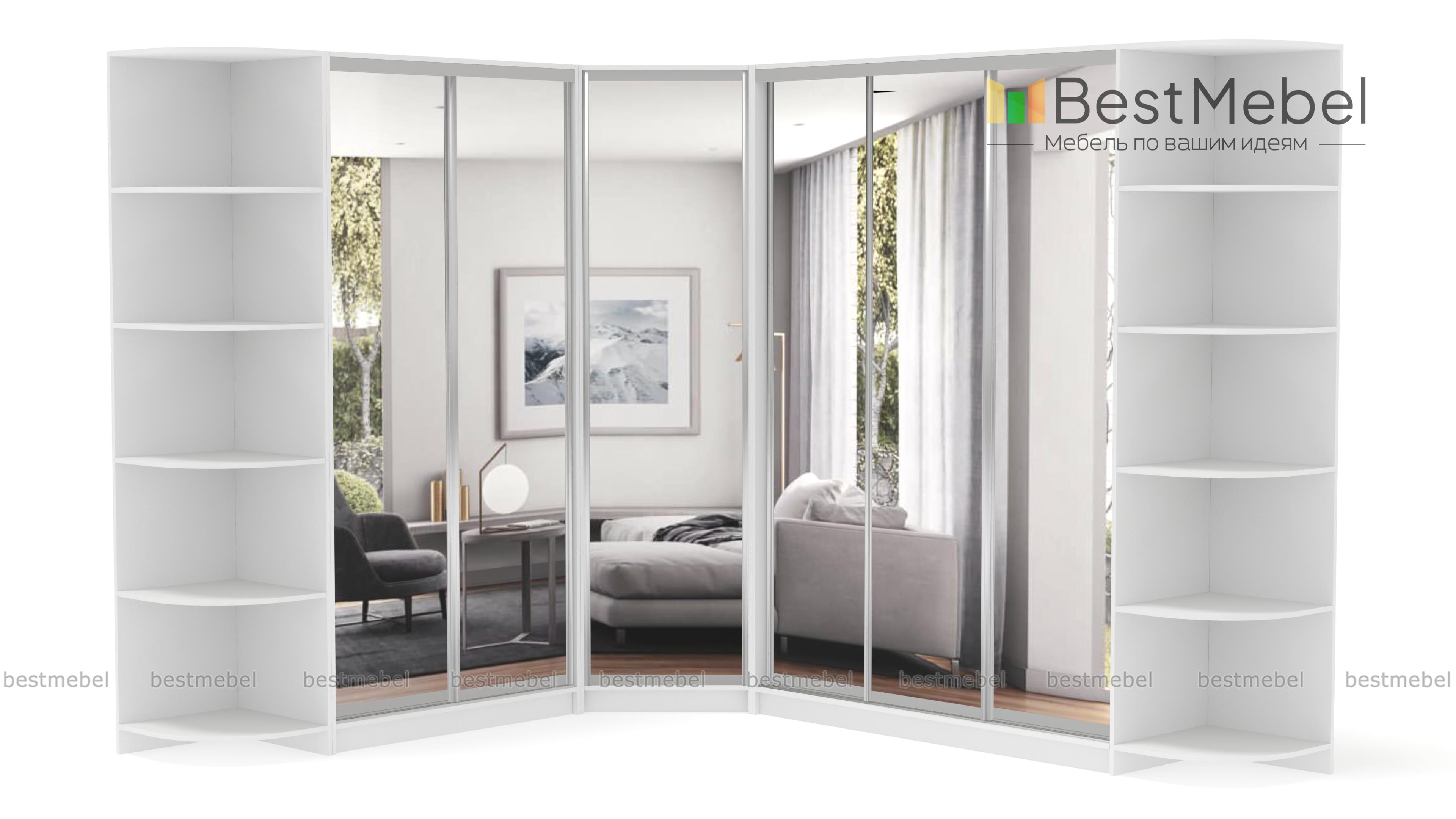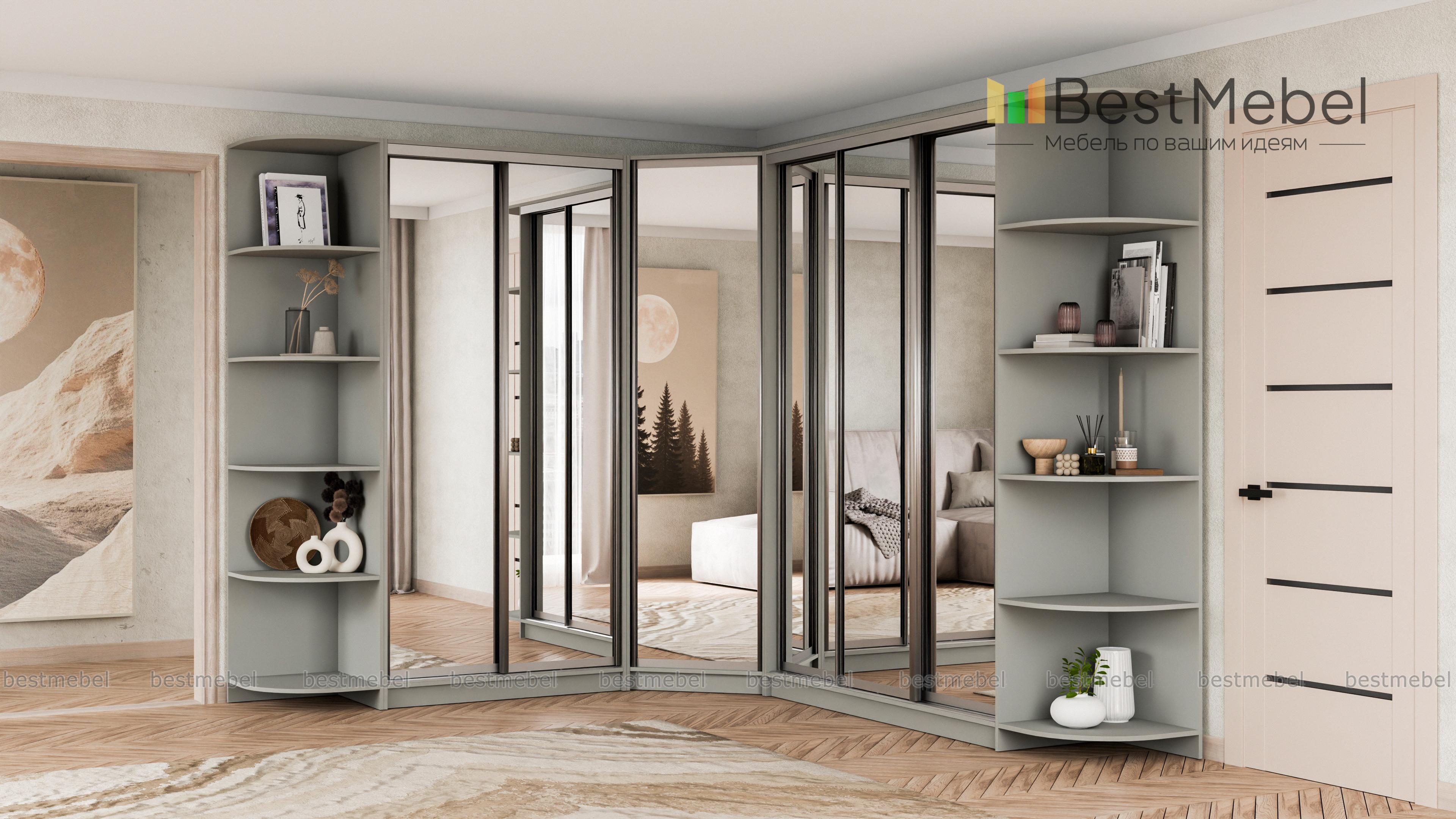 Шкаф угловой НКМ BMS – гигант для самого богатого гардероба. Даже если Вы активный любитель шопинга, всем приобретениям последних модных коллекций найдется здесь место. Супер вместительная угловая модель ослепляет сиянием зеркальных дверей-купе. А за ними прячется богатый ассортимент вариантов размещения одежды и обуви, это и штанги разной длины и удобные полочки. Над штангами предусмотрены антресольные отделы. Полностью зеркальные фасады сделают комнату просторнее и светлее. Элегантные дополнения в виде угловых элементов позволяют придать интерьеру нотку индивидуальности, используя декор. Купить шкаф угловой НКМ BMS можно быстро и недорого только у нас.
