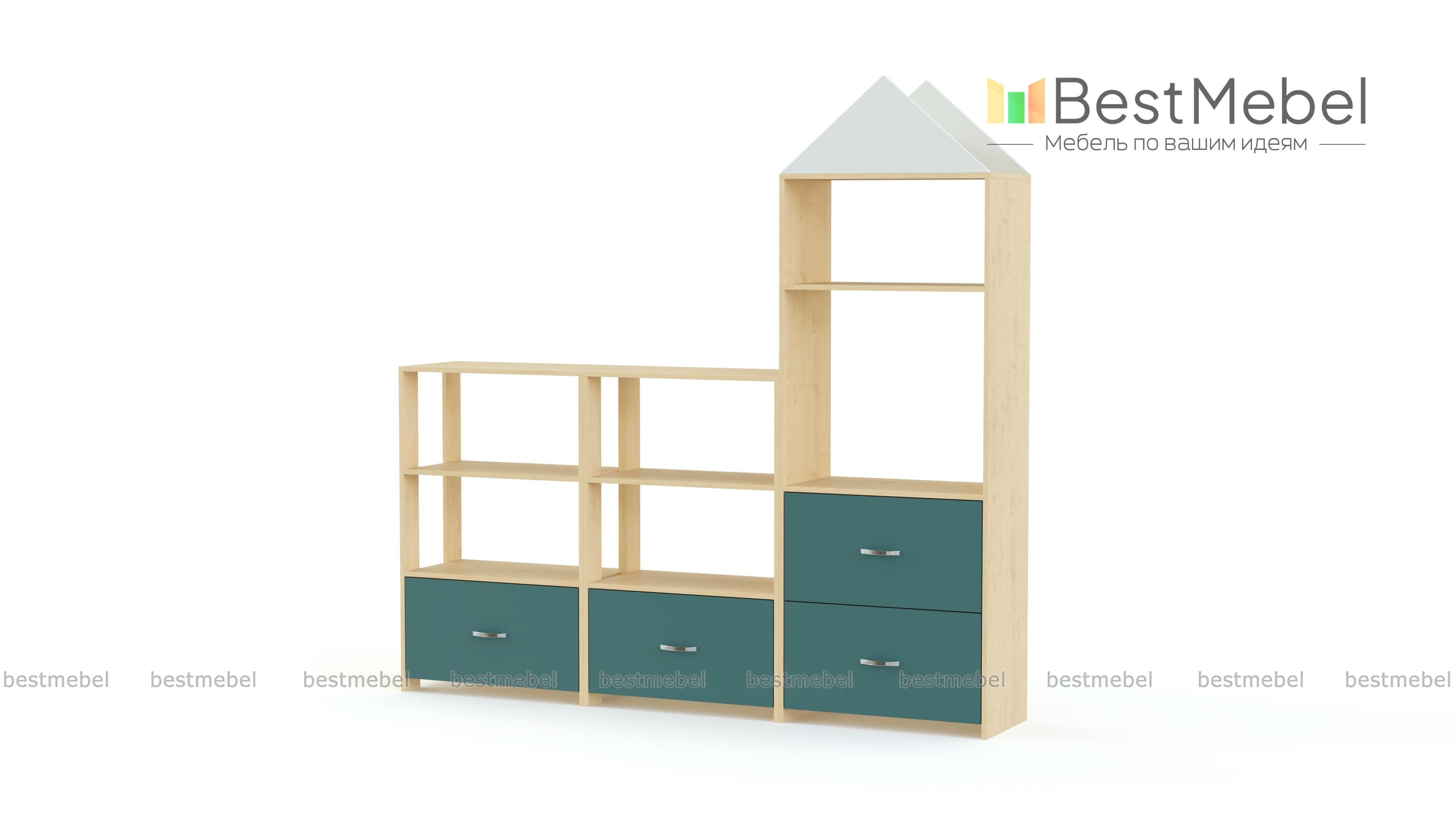 Стеллаж Астра 13 BMS включает в себя три модуля – два низких и высокий в форме башенки. Удобная система хранения из просторных открытых секций и выдвижных ящиков позволяет разместить игрушки, книги, поделки и материалы для творчества. Модель отличается красочным современным дизайном и надолго сохранит эстетичный вид благодаря использованию износостойких и экологичных материалов. Купить стеллаж Астра 13 BMS для меблировки игровой детской комнаты вы сможете в нашем интернет-магазине.