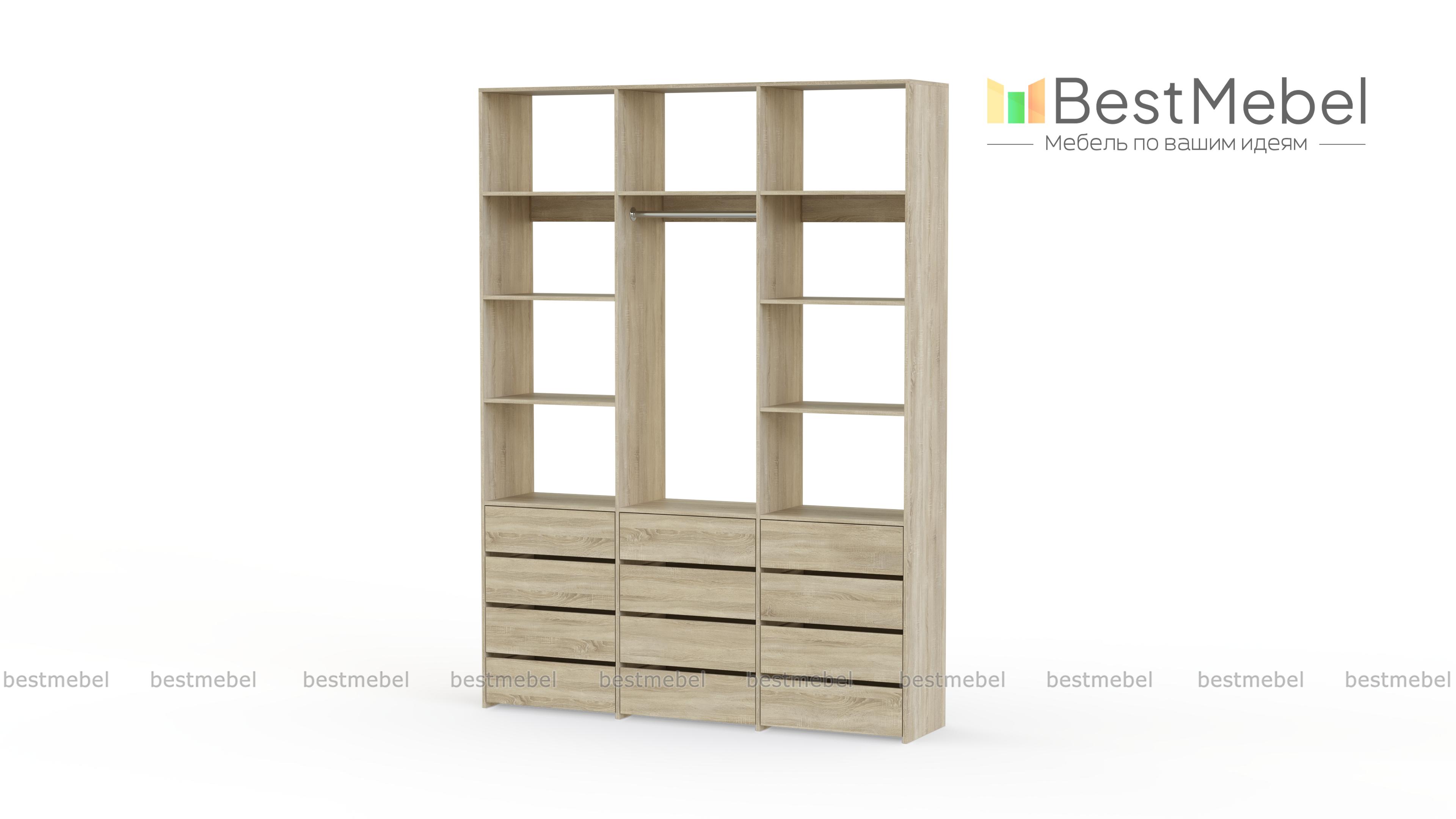Стеллаж для одежды Мирта 49 BMS подходит для обустройства прихожих и гардеробных. Выдвижные нижние ящики, штанга и расположенные сверху и по бокам полки позволят компактно разместить одежду на вешалках и в сложенном виде, белье, обувь и аксессуары. Изготовленный из ламинированной ДСП, стеллаж отличается надежностью и долговечностью. Купить стеллаж для одежды Мирта 49 BMS вы всегда сможете в нашем интернет-магазине с индивидуальным подбором цвета и размеров.