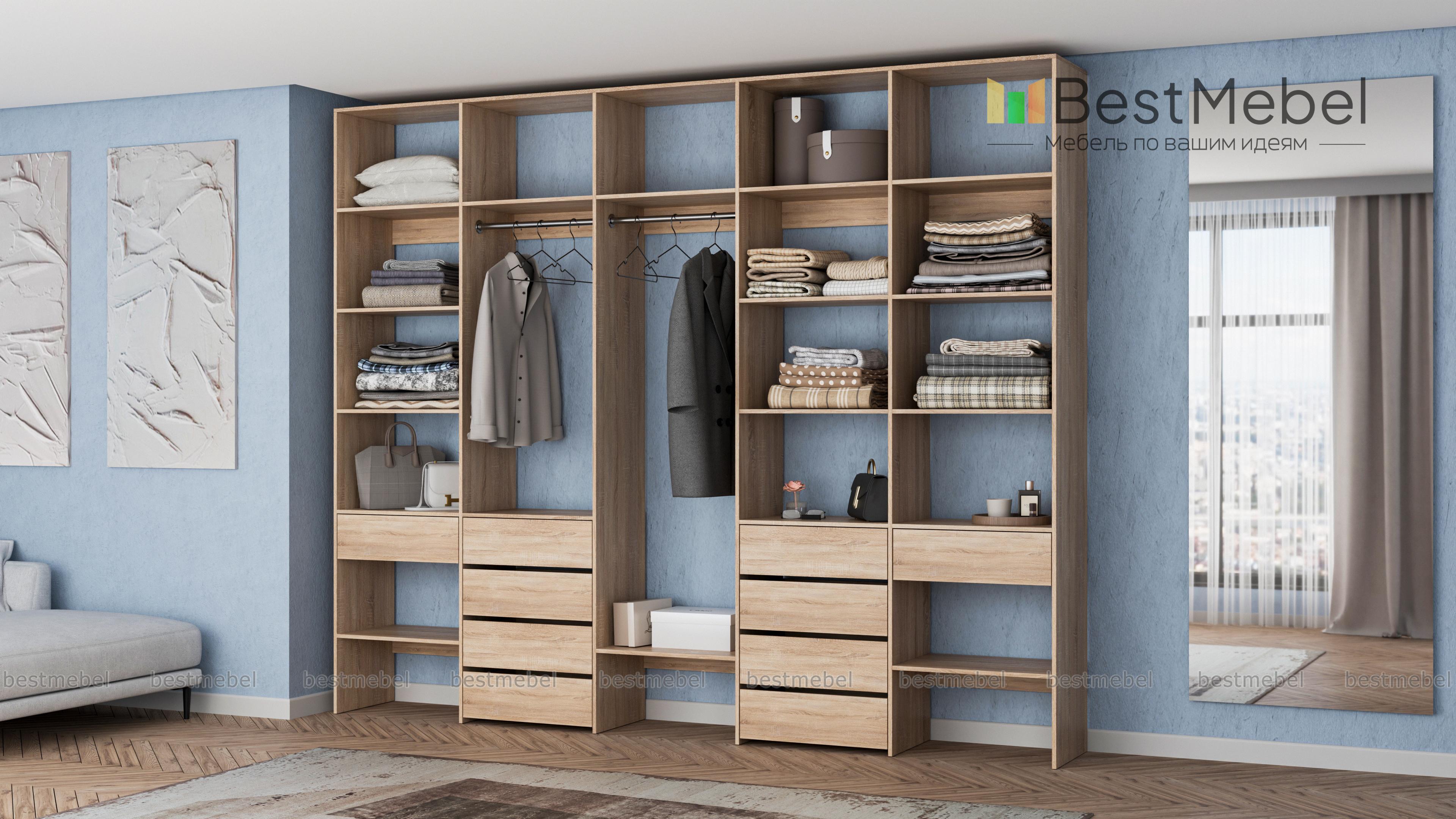 Стеллаж для одежды Мирта 71 BMS вместителен и подходит для просторных помещений. Использование ламинированной плиты делает модель недорогой, но при этом надежной и не требующей сложного ухода. Продуманная конфигурация стеллажа предусматривает платяные секции под одежду разной длины, большое количество полок и выдвижные ящики, заменяющие отдельно стоящие комоды. Купить стеллаж для одежды Мирта 71 BMS в нужном размере и гармонирующем с интерьером оттенке вы сможете в нашем интернет-магазине.