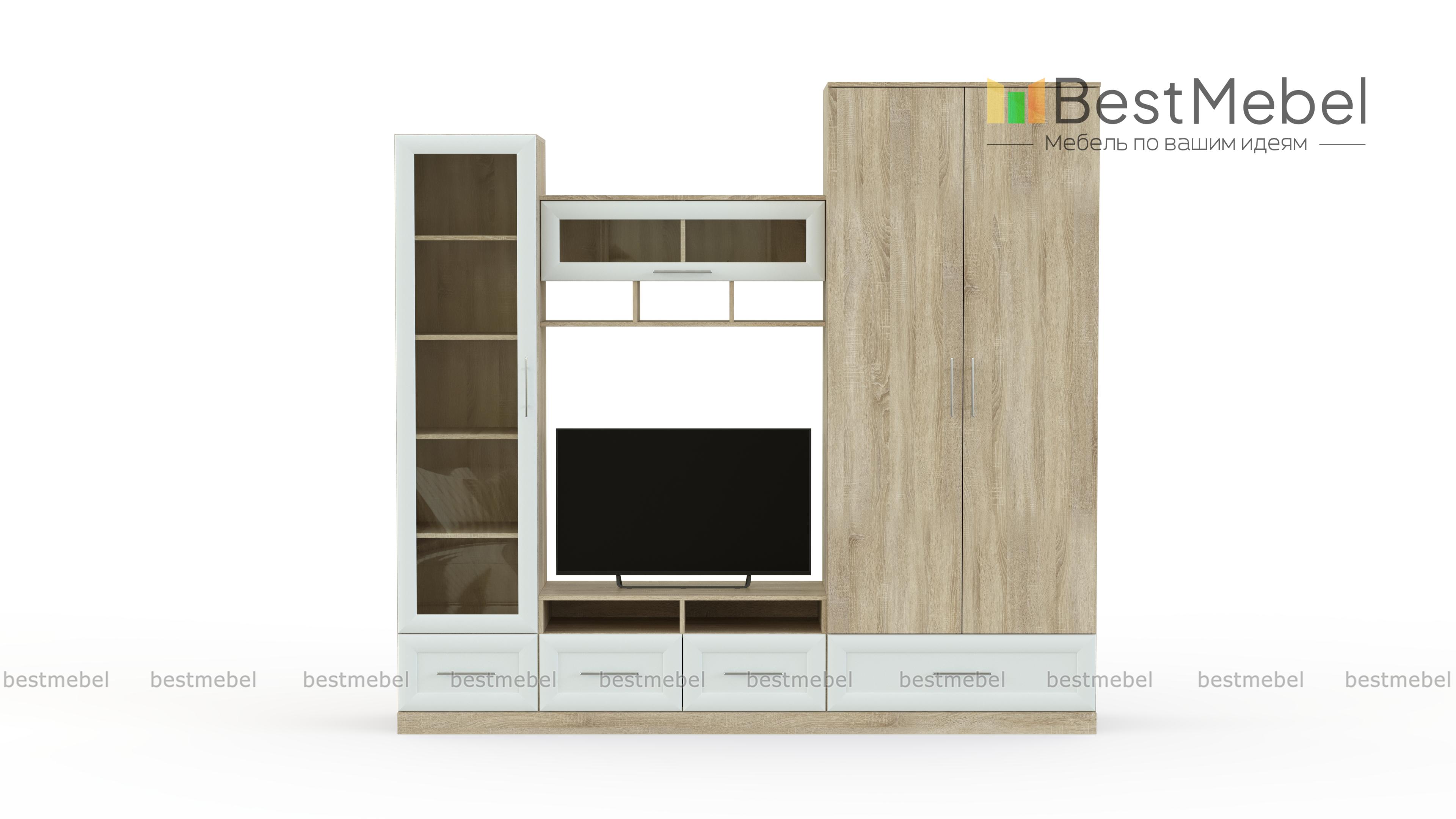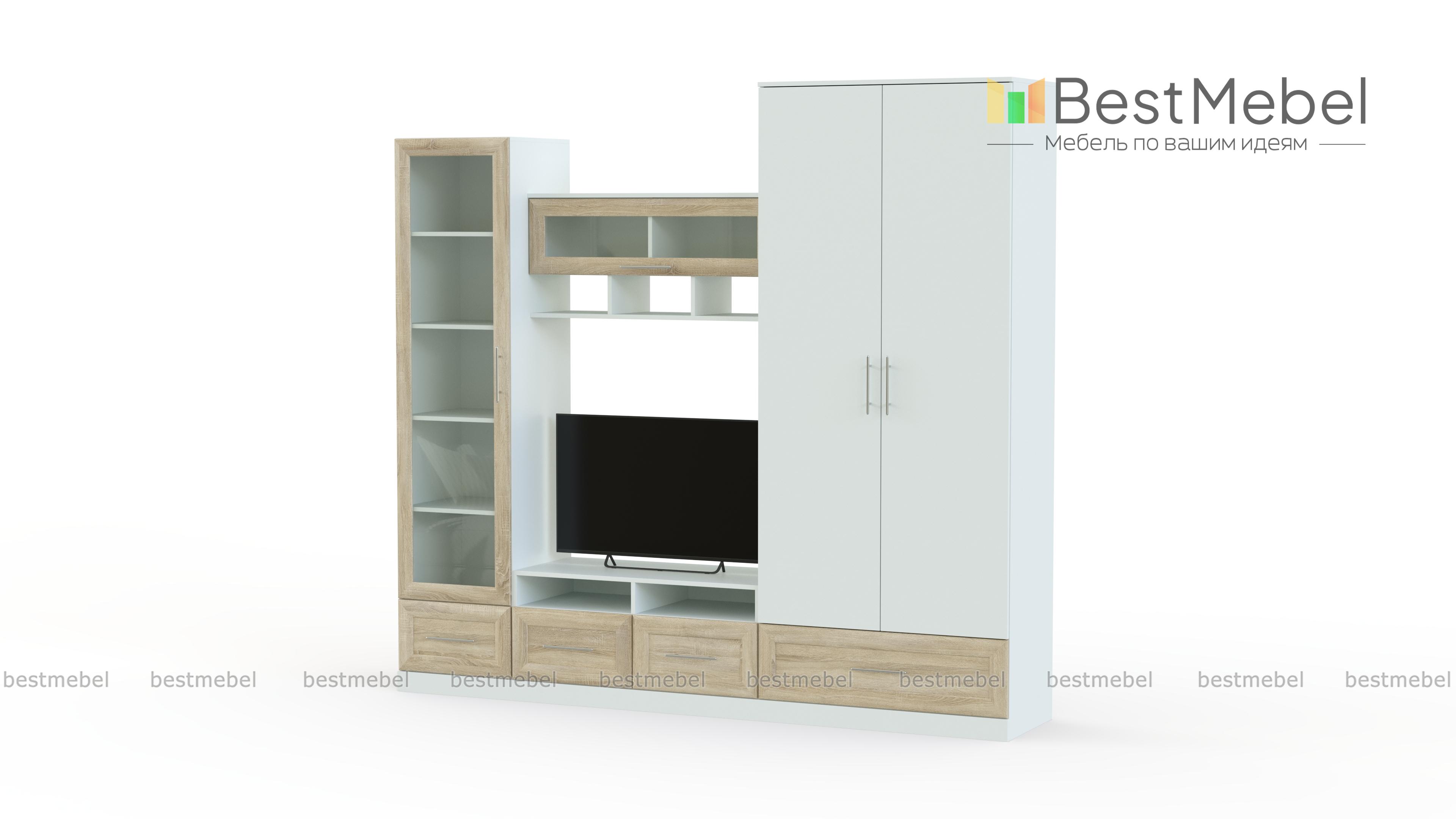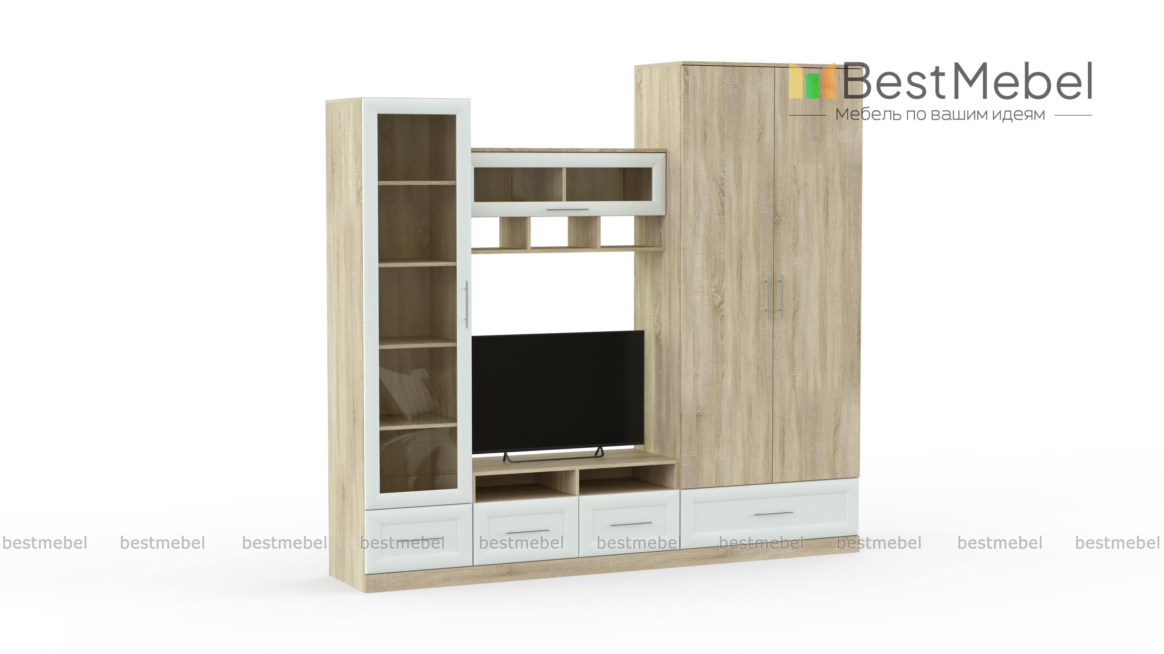 Стенка Сицилия 1 BMS из популярной экономичной серии отличается вместительностью и элегантным дизайном. В оформлении фасадов эффектно сочетаются разные материалы и фактуры. Стенка оборудована всем необходимым, чтобы оформить зону отдыха и разместить ТВ, книги, декоративные предметы, одежду, дополнительную аппаратуру и многое другое. Купить стенку Сицилия 1 BMS приглашаем по доступной цене в наш интернет-магазин