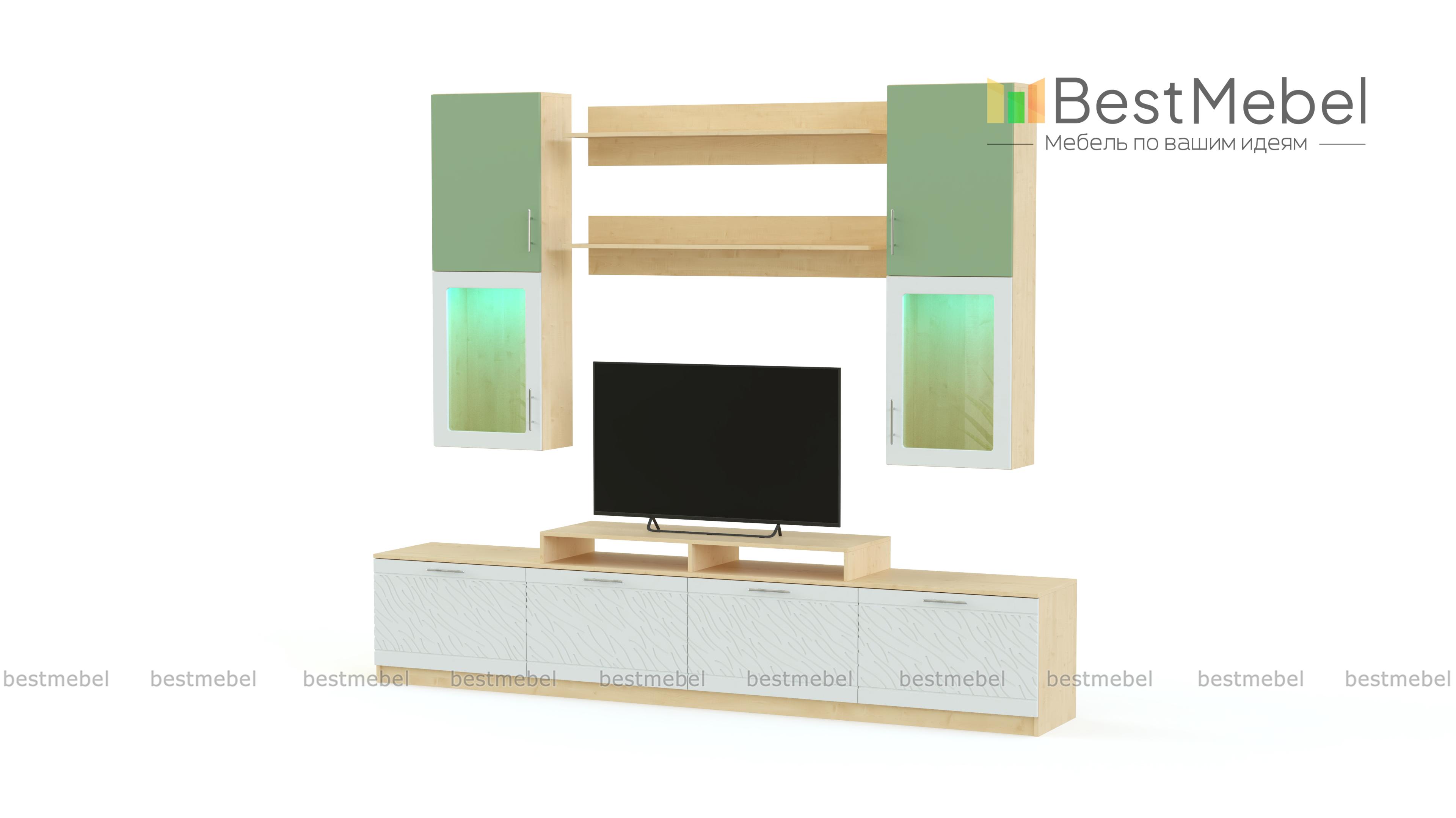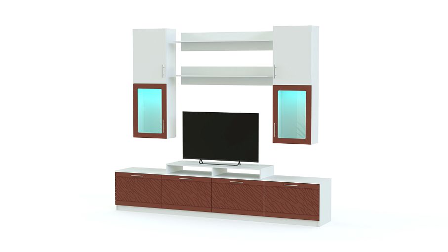 Стенка Вельвет 25 BMS из популярной серии отличается практичной модульной конструкцией и ярким современным дизайном. Напольные и навесные элементы подчеркнут достоинства как просторного, так и малогабаритного помещения и легко впишутся в любую планировку. В комплект входят низкая широкая тумба с подставкой для ТВ, две открытые полки и два настенных шкафа с витринными отделениями. Фасады сочетают однотонные и контрастные цветные поверхности с рельефным рисунком. Купить стенку Вельвет 25 BMS приглашаем в наш интернет-магазин по доступной цене.