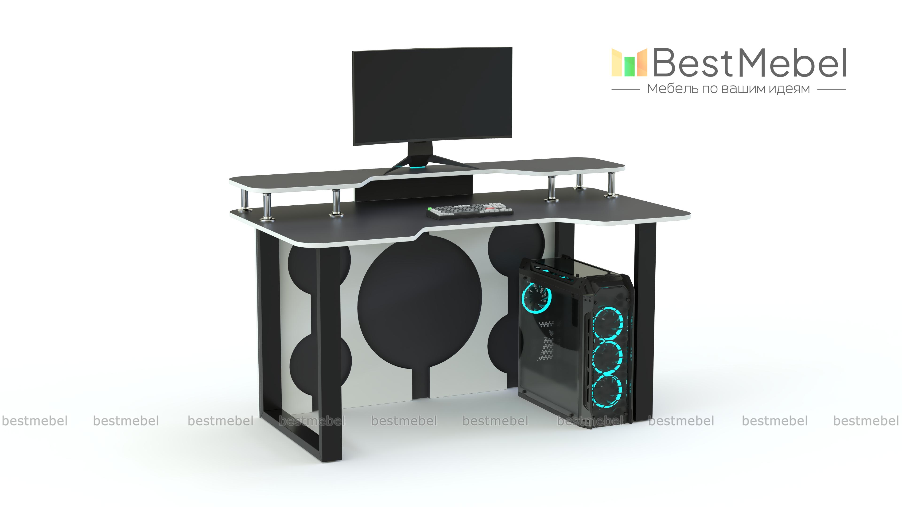 Геймерский стол Брук тип 9 BMS с рамочными опорами и декоративными вырезами задней стенки идеально вписывается в интерьеры стиля хай-тек или индастриал. Компактный, легкий и устойчивый, стол оборудован просторной столешницей с эргономичным вырезом. Разместить на удобной высоте монитор и современную периферию позволит надстройка на хромированных опорах. Купить геймерский стол Брук тип 9 BMS вы сможете в нашем интернет-магазине с подбором цвета по каталогу.
