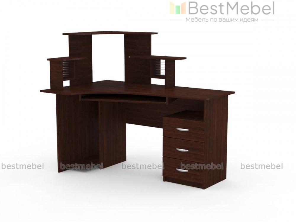 Угловой стол компьютерный СКУ-4 позволит сэкономить пространство в Вашей комнате и поставить всю необходимую Вам технику. В центральной части стола расположена глубокая ниша для монитора, а по бокам есть 2 стойки для мелочей. Наличие выдвижных ящиков сбоку позволяет хранить необходимые Вам документы и мелкие предметы. В нижней части удобно расположена полка под системный блок. Если Вас заинтересовала данная модель, Вы можете недорого заказать ее в нашем интернет-магазине.