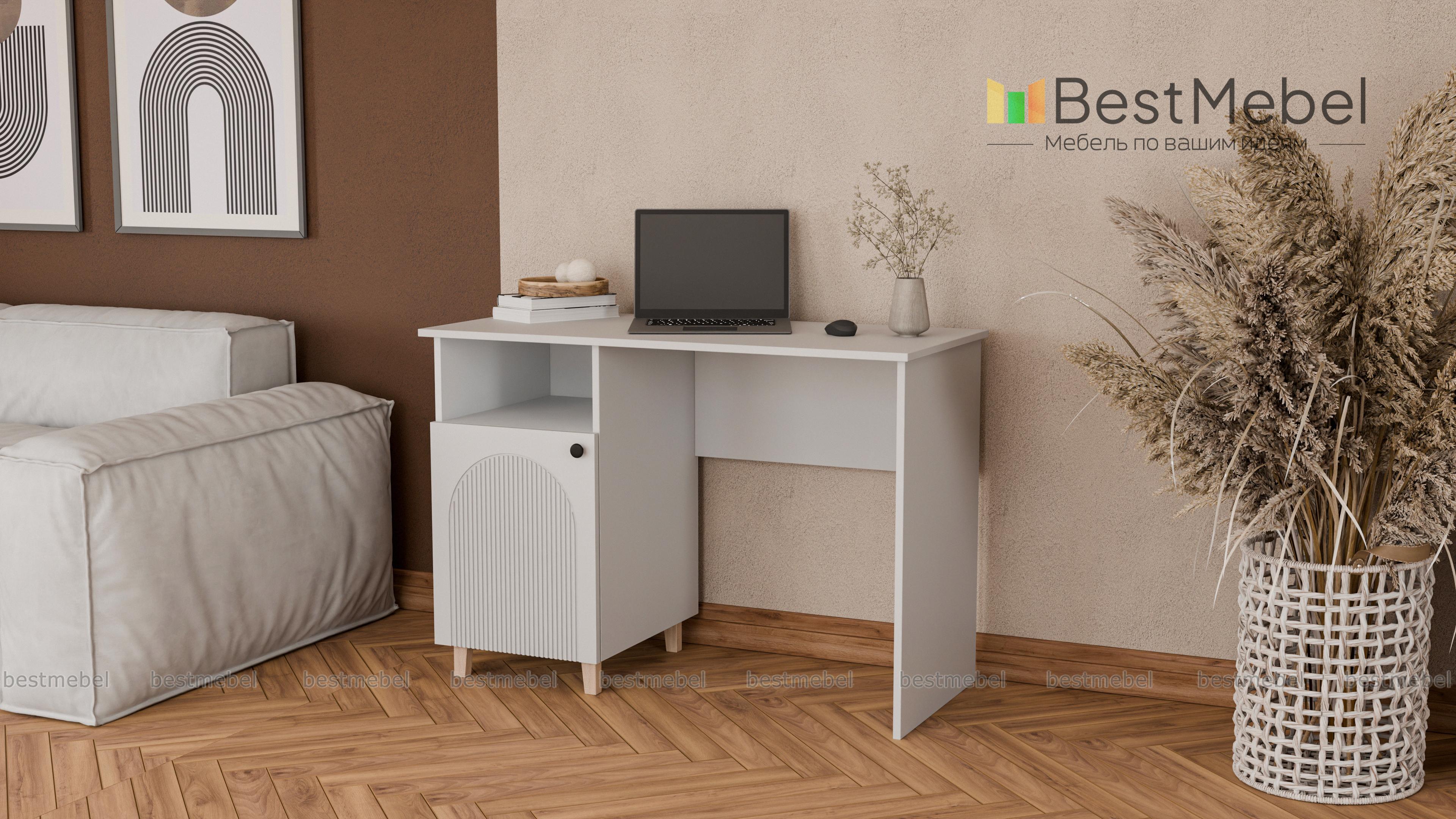 Письменный стол Рене 2 BMS поможет вам организовать комфортные условия для работы и учебы. Модель в современном дизайне с фрезерованным фасадом оборудована тумбой с высокими ножками, распашным отделением и нишей для бумаг. Широкая прямоугольная столешница удобна для размещения компьютера, работы с документами и творчества. Купить письменный стол Рене 2 BMS вы всегда сможете в нашем интернет-магазине с выбором оптимальных размеров, цвета и фурнитуры.