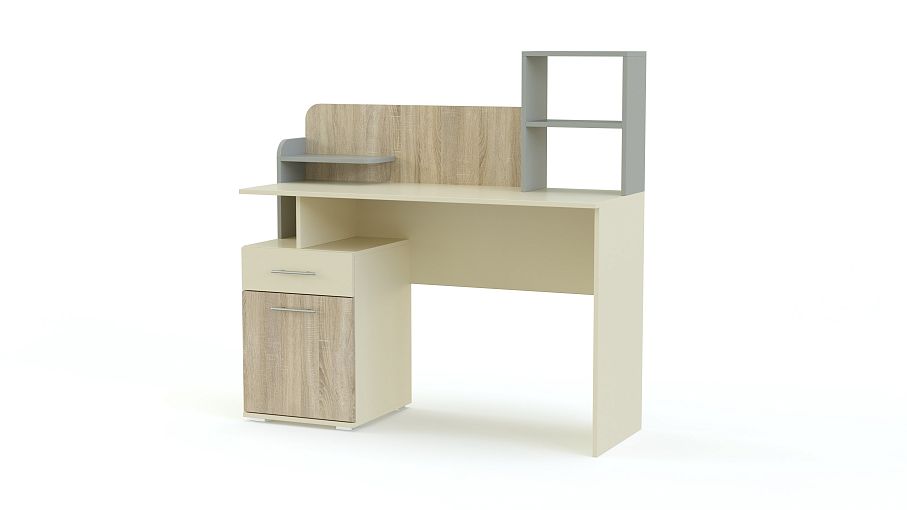 Если вы решаете проблему современного оборудования комнаты школьника, обратите внимание на письменный стол Тайм ИД 01.327 BMS. Возможно, это именно то, что вы искали. Компактные размеры, удобное расположение всех элементов. Предусмотрены все детали, создающие комфортные условия для учебы. Площади столешницы достаточно для письменных работ и работы на компьютере или ноутбуке. Надстройка с полками предназначена для размещения учебников, пособий. На маленькой полочке можно поместить любимый сувенир, фотографии. Тумба имеет два вместительных ящика для тетрадей, конспектов, канцелярских принадлежностей, различных мелочей. Невероятно красиво выглядит цветовое оформление модели с использованием яркой отделки отдельных элементов. Если выбранные для базовой модели цвета и габаритные размеры вас не устраивают, вы можете изменить их при заказе на нашем сайте. Предлагаем заказать у нас качественный письменный стол Тайм ИД 01.327 BMS по доступной цене.