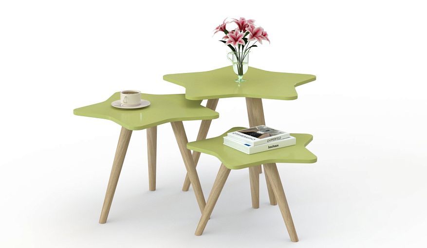 Журнальный стол Атом 7 BMS представляет собой яркий комплект из трех модулей, который добавит цвета сканди-интерьеру. Столики разной высоты оснащены цветными фигурными столешницами и скошенными деревянными опорами. Столы можно использовать в одном помещении или расположить в разных комнатах – гостиной, детской, спальне и на лоджии, обустроив комфортную зону отдыха. Купить журнальный стол Атом 7 BMS вы сможете на сайте нашего интернет-магазина с выбором цвета и размеров.