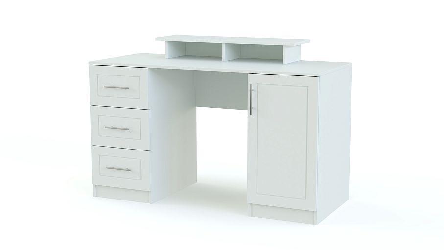 Отличным предметом интерьера станет макияжный стол Линда BMS. Изделие включает в себя рабочую поверхность, надстройку, а также 3 выдвижных ящика и тумбу с распашной дверцей. Модель оборудована надежной и стильной фурнитурой, поэтому изделие может конкурировать даже с дорогой дизайнерской мебелью. Купить стол макияжный Линда BMS можно на сайте нашего магазина.