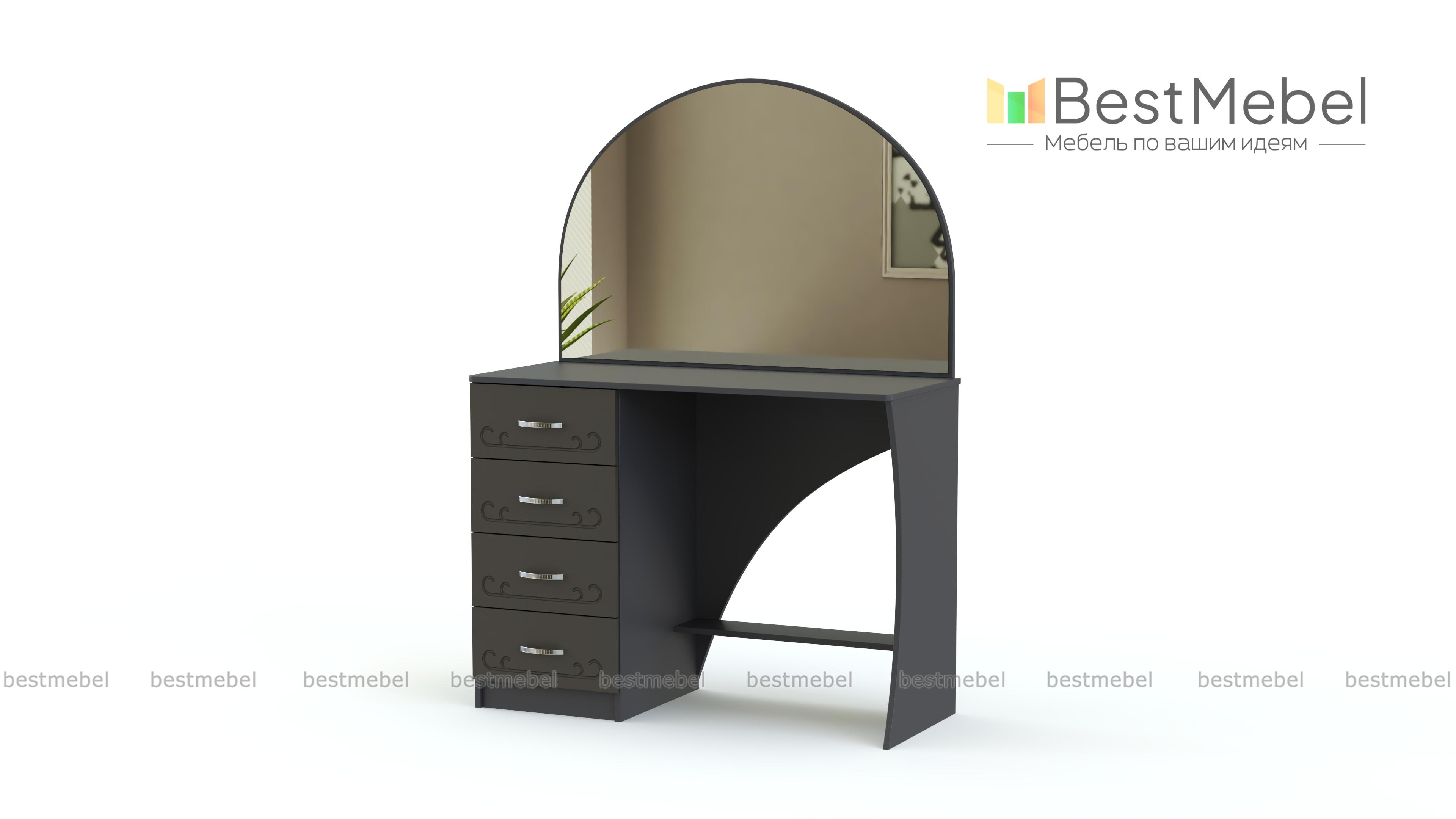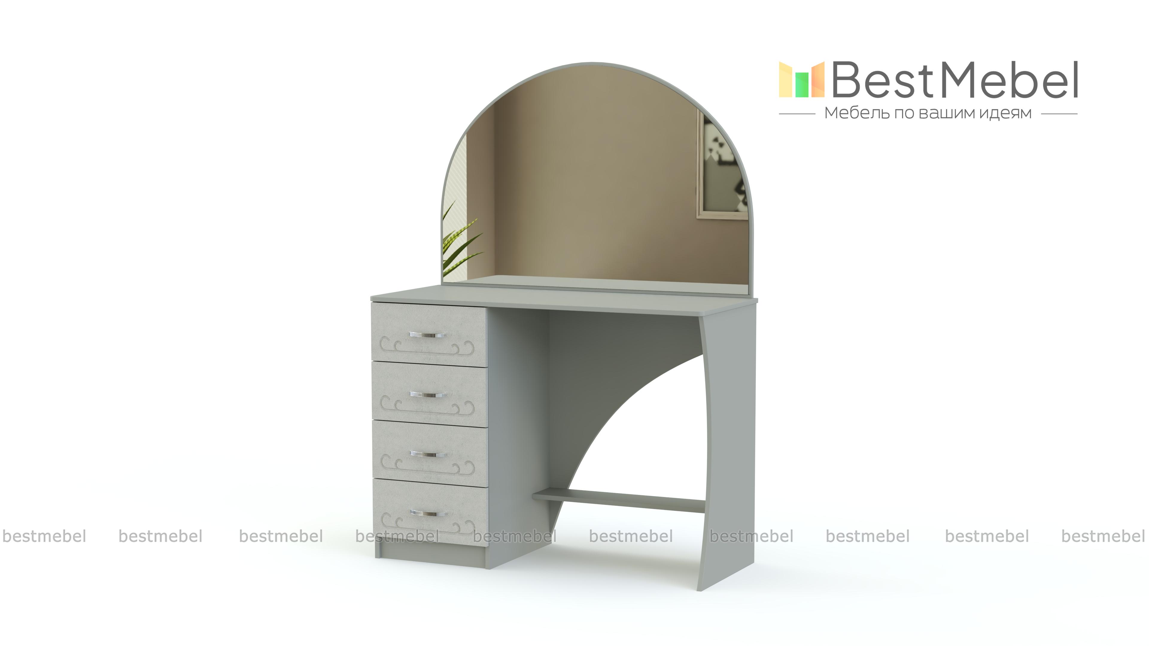 Стол туалетный Ланистер 18 BMS украсит интерьер спальни в классическом стиле и сделает уход за собой максимально комфортным. Изящная модель, выполненная в универсальном светлом оттенке, декорирована по фасаду легкой фрезеровкой. Столик оборудован тумбой с четырьмя выдвижными ящиками для хранения мелочей, нижней полкой, просторной столешницей и большим скругленным зеркалом. Купить стол туалетный Ланистер 18 BMS по лучшей цене вы сможете в нашем интернет-магазине.
