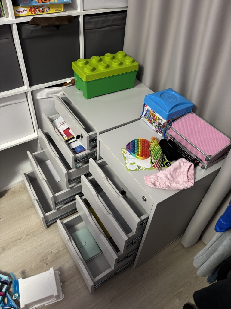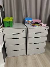 Заказ 00000368908Заказ 00000368909Нам изготовили тумбы под письменный стол для детей. Установить до конца еще не успели, но тумбами дети уже вовсю пользуются! Достаточно вместительные ящики, плавные доводчики , вырезы вместо ручек, сделали специально ящик на замке для хранения секретиков ))) Тумбы сделали по индивидуальным размерам и нужного нам серого цвета. Изготовили за 2 недели, оперативно доставили. Муж собрал сам,инструкция понятная и доступная. В будущем планируем еще два пенала для учебников заказать))