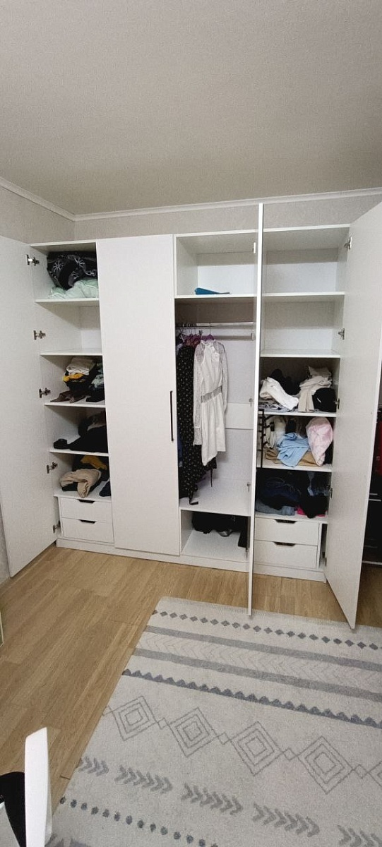 Шкаф качественный, вместительный. Порадовала возможность моделировать размеры.К сожалению, есть и недочёты: во-первых, малопонятная инструкция по сборке(она есть на фото, это всё, один лист с общей схемой)- собирали шкаф сами, и несколько раз приходилось переделывать отдельные моменты, потому что в инструкции нет пошаговой схемы.Во-вторых, зеркало на дверь. В первый раз, не подумав, прикрутили ручку прямо к стеклу (никаких прокладок в комплекте не идет)- в результате стекло сильно треснуло ещё на этапе сборки. Перезаказали дверь (с доплатой), спасибо отделу гарантий, вопрос решили очень быстро! Но и со второй дверью получилось не очень- купили специальные прокладки, дверь повесили, но она сама дала трещину (на фото можно увидеть). Радует, что не критично, пока будет так. Но покупателям советую или не брать зеркальную дверь вообще, или купить такой вариант, чтобы ручка монтировалась на дерево, потому что замена вам в некоторю сумму обойдётся. А так шкаф сам по себе очень хороший, и сервис тоже!
