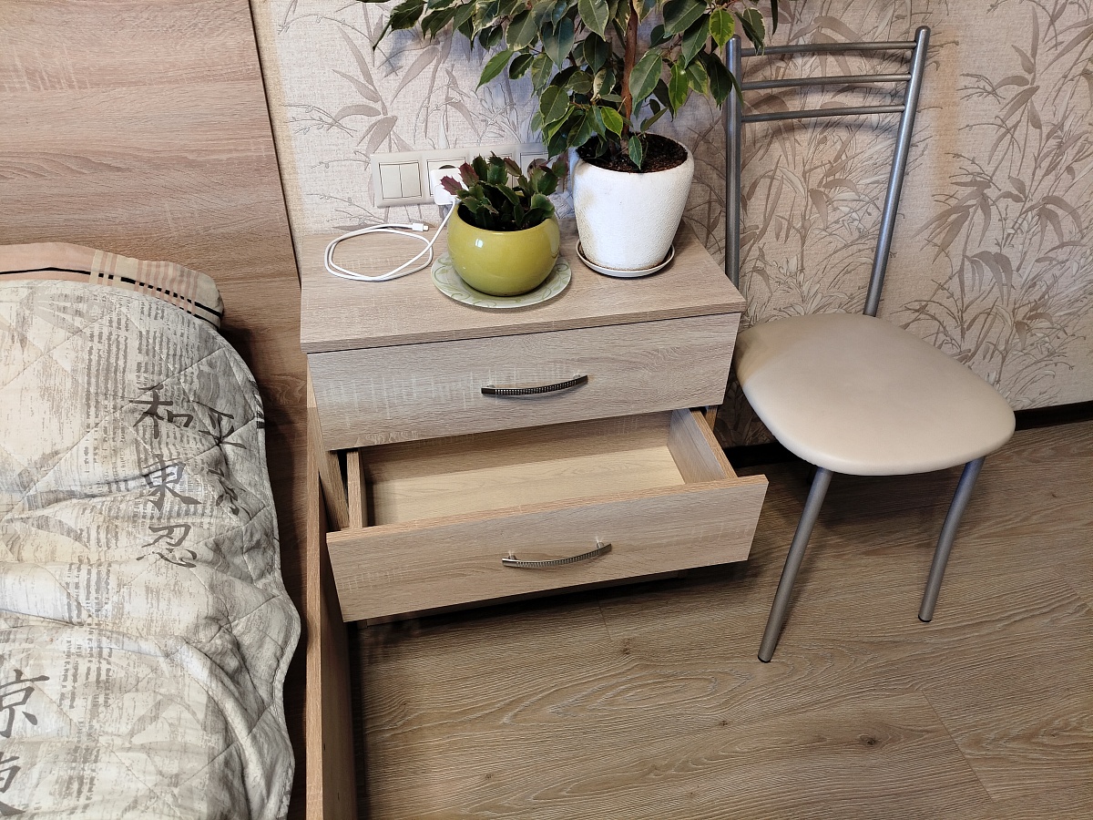 Тумбу заказали в своих размерах и цвете дуб крафт белый. В целом, мы ей очень довольны. Быстрое изготовление, отсутствие царапин и сколов, тактильно приятный материал. В процессе сборки возник вопрос. Почему "задняя стенка ДВП в паз" состоит из 3 частей? Ожидали ее цельной или хотя бы из 2х частей, чтобы верх и низ фиксировался в пазах. И, конечно, хотелось бы более подробную инструкцию по сборке.  Для тех, кому может понадобится, прилагаю размеры упора-защелки с толкателем, чтобы правильно выставить его на дверцах и ящике.