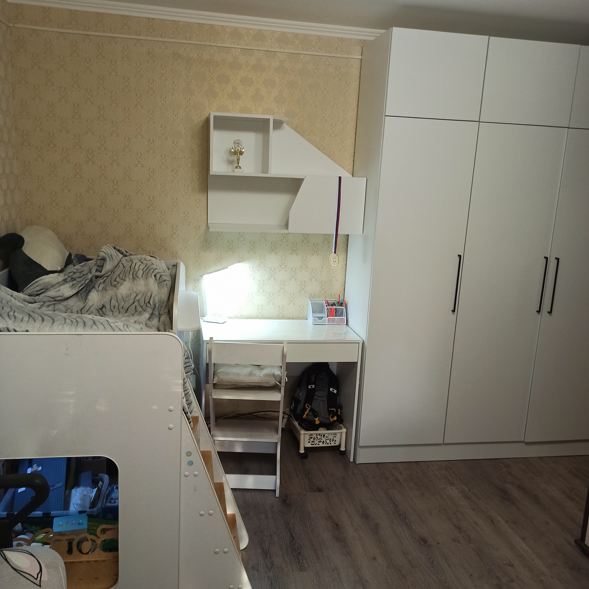 Заказывал по индивидуальным размерам, заказ 00000809230. Доставили быстро, собирал сам, по схеме ничего сложного. Ребёнку в детскую отличный шкаф, не первый мой заказ.
