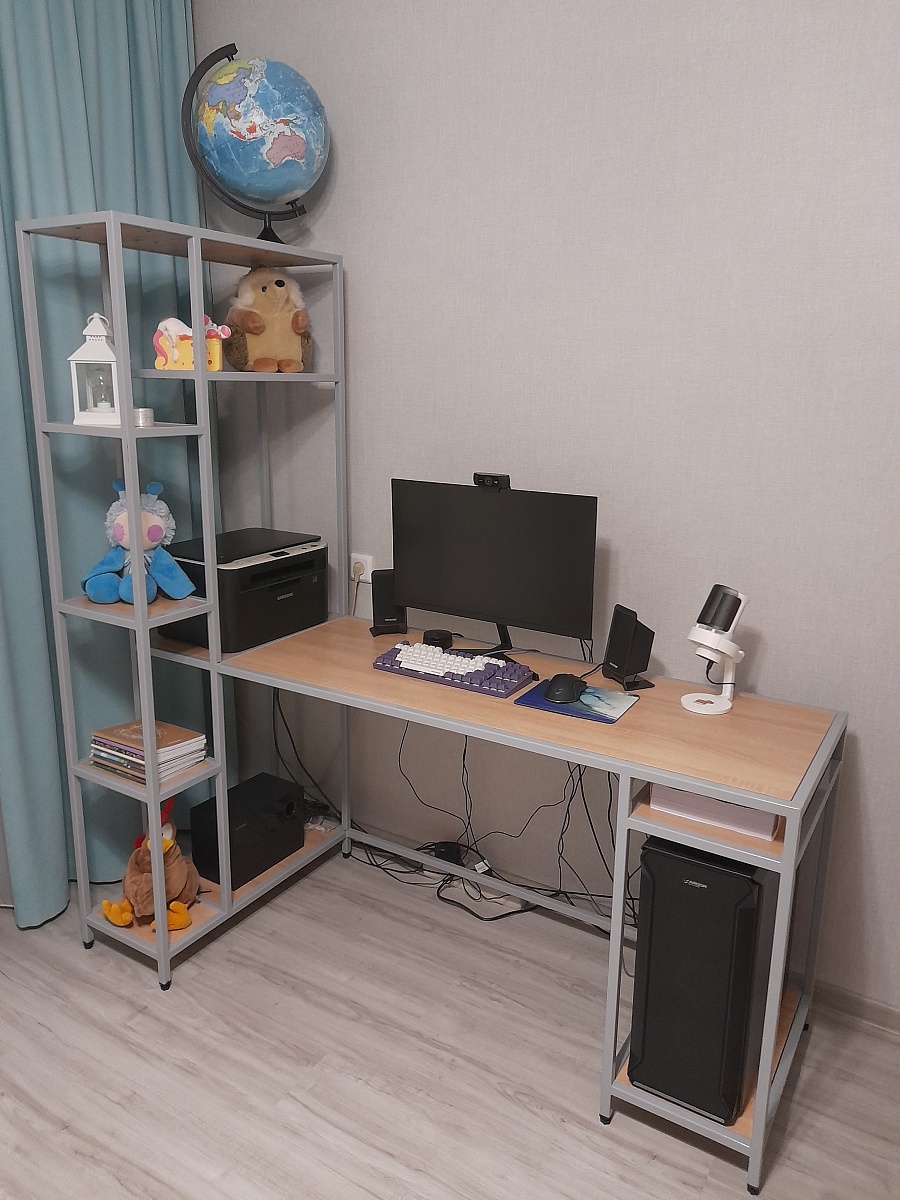 Этот компьютерный стол «Урсула 16» заказали для дочки-студентки. Выбирали вместе с ней. (О-о-очень долго выбирали! На разных сайтах, у разных производителей….)   Наконец-то остановили свой выбор на сайте BMS. В итоге – очень довольны данной покупкой. Стол удобный, красивый, функциональный, современный. Все на своем месте: системный блок, принтер, сабвуфер, и даже есть полочка для бумаги формата А4. Много полочек для тетрадей и других приятных мелочей. Компьютерное кресло легко задвигается.Стол доставили очень аккуратно упакованный. Металлический каркас идет целиком, а полочки отдельно крепятся на шурупы. Собрали быстро, все идеально подошло. В общем, покупкой очень довольны! Рекомендуем данный стол для покупки! Большое спасибо сотрудникам BMS!!!