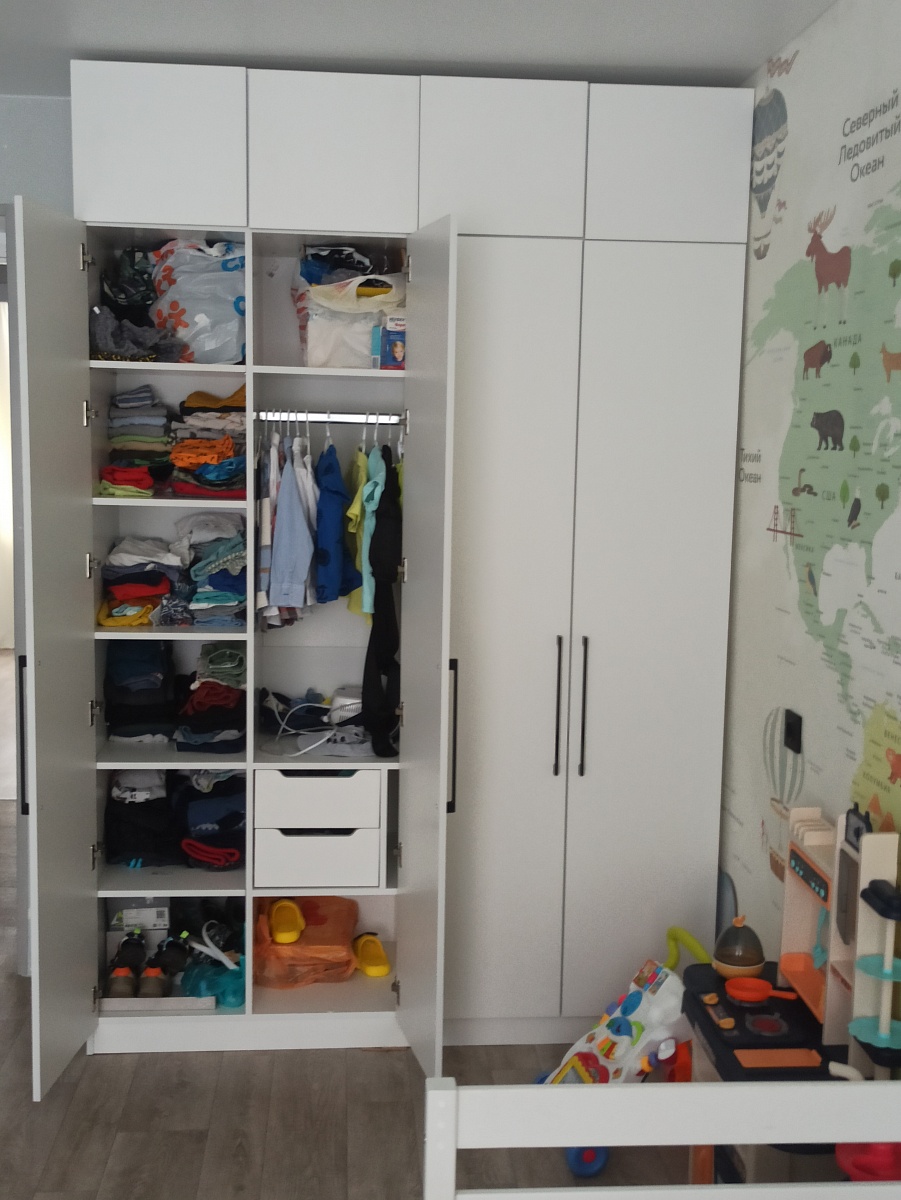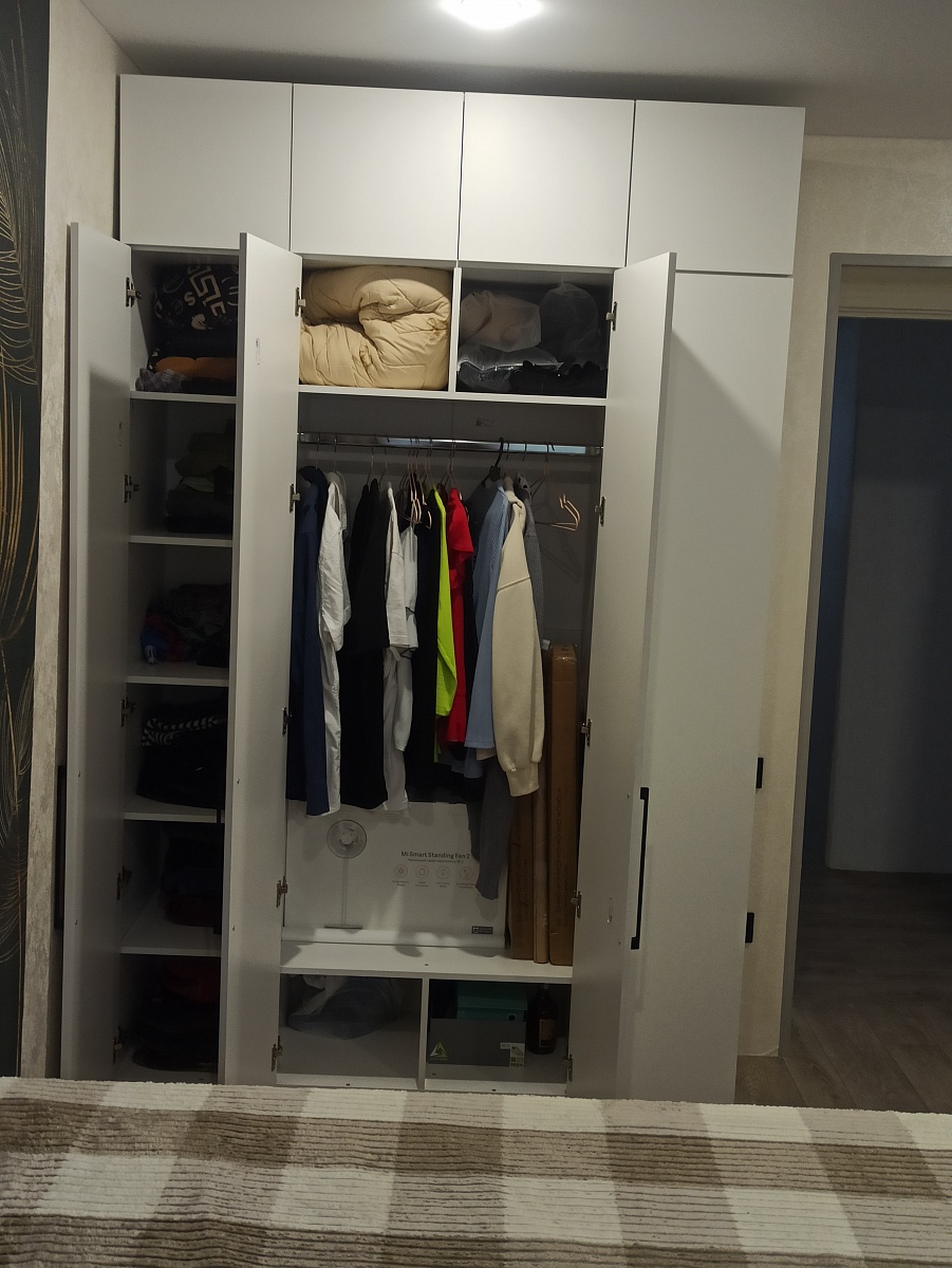 Шкаф хороший, не могу нарадоваться и налюбоваться. Цена 🔥Выполнен по моим размерам, и внутри сделали так же по моему желанию, и петли перевесили и полочки выдвижные добавили все как угодно клиенту. Заказ №1026465