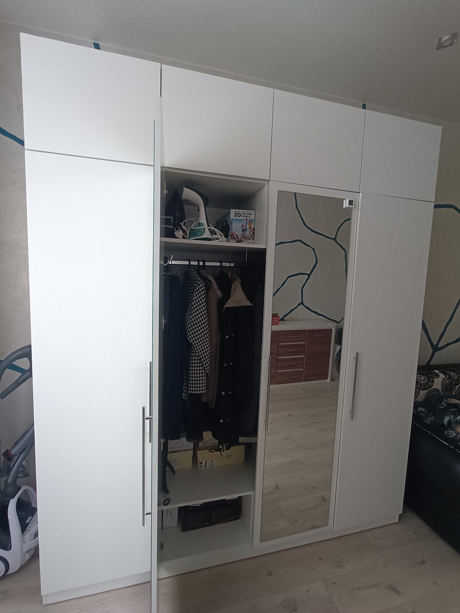 Шкафом доволен! Делал по индивидуальным размерам, т.к у меня высокие потолки (3м) и хотелось увеличенную глубину. Также по моей просьбе согласовали вклейку двух зеркал на лицевую часть. В общем закроют вопрос по любым вашим хотелкам. Заказ 668409