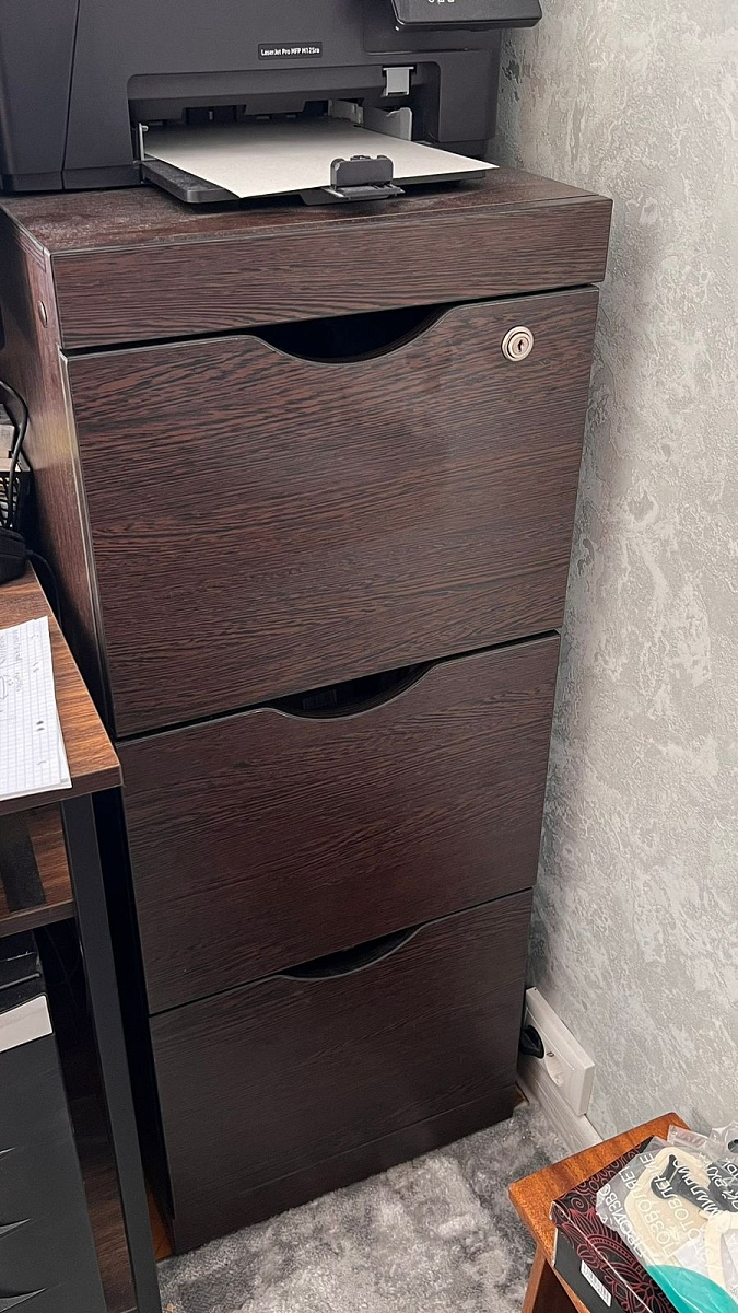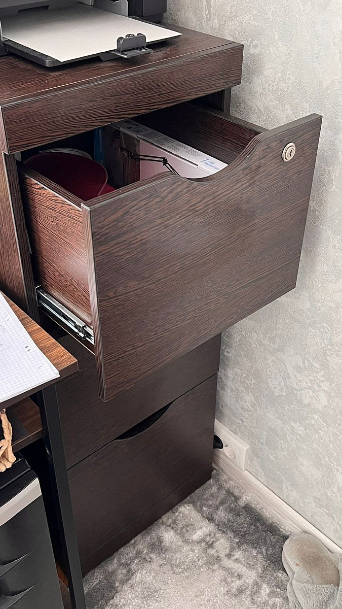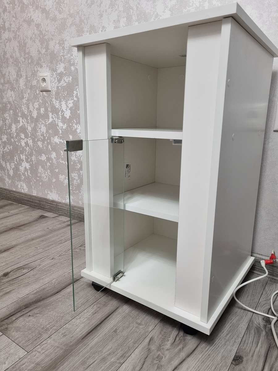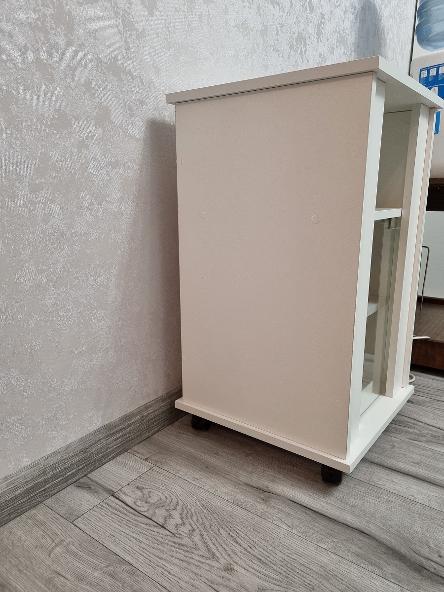Красивая тумба, органично вписалась в интерьер с другой мебелью. Мы брали её для кулера, идеальный вариант. И очень хорошо, что можно изменить размеры, мы уменьшали ширину.