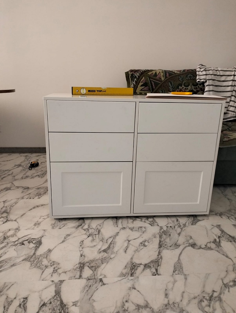 Заказ 00000714226, изделие Комод Клео 15 BMS. Нашёл на сайте данной компании комод по нужным мне размерам, достаточно вместительный. Огромным плюсом является то, что при заказе можно выбрать не только необходимые габаритные размеры, но и фурнитуру, цвет (доступно большое количество различных цветов, можно подобрать под любой интерьер). Качество исполнения и сроки поставки оказались на высоте. Очень доволен покупкой.