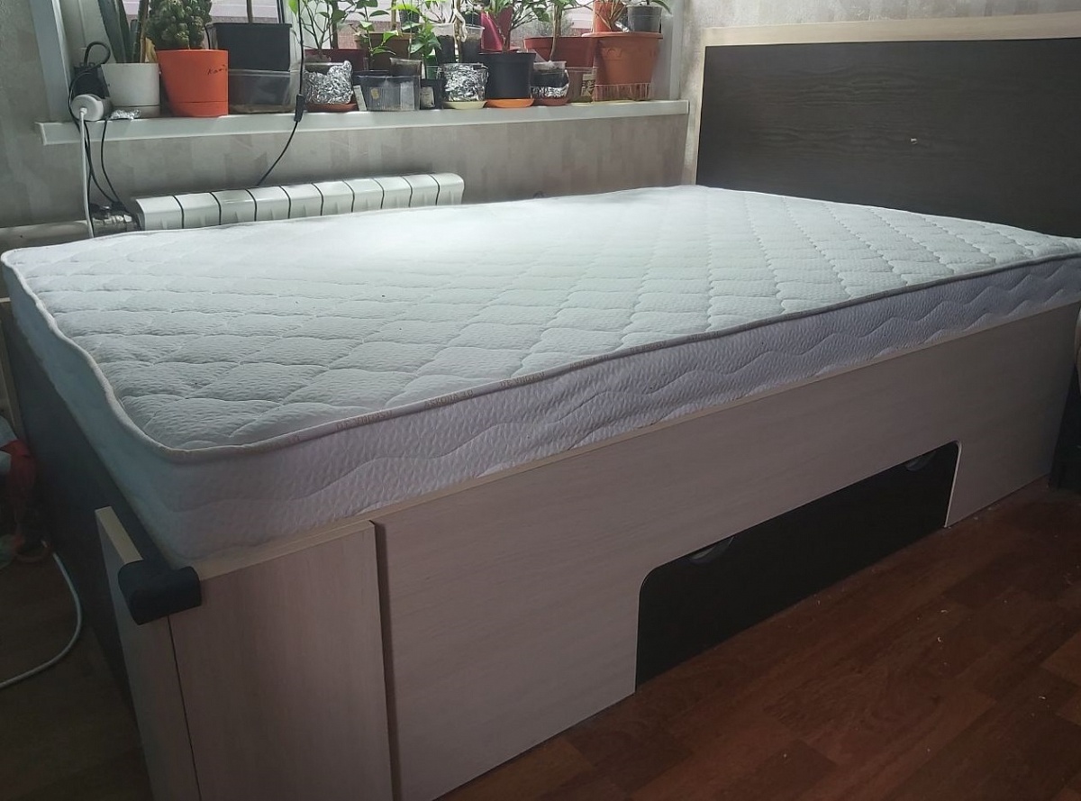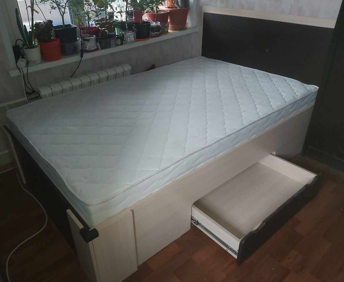 Заказ 00000224768  Кровать HEOS BMS (1300х950х2000) (Заказ в личном кабинете №719597)Большая кровать с выдвижным ящиком. Собирал самостоятельно, проста в сборке. Вместо классического ортопедического основания - деталь из ДСП, что имеет свои плюсы - не будут ломаться ламели.