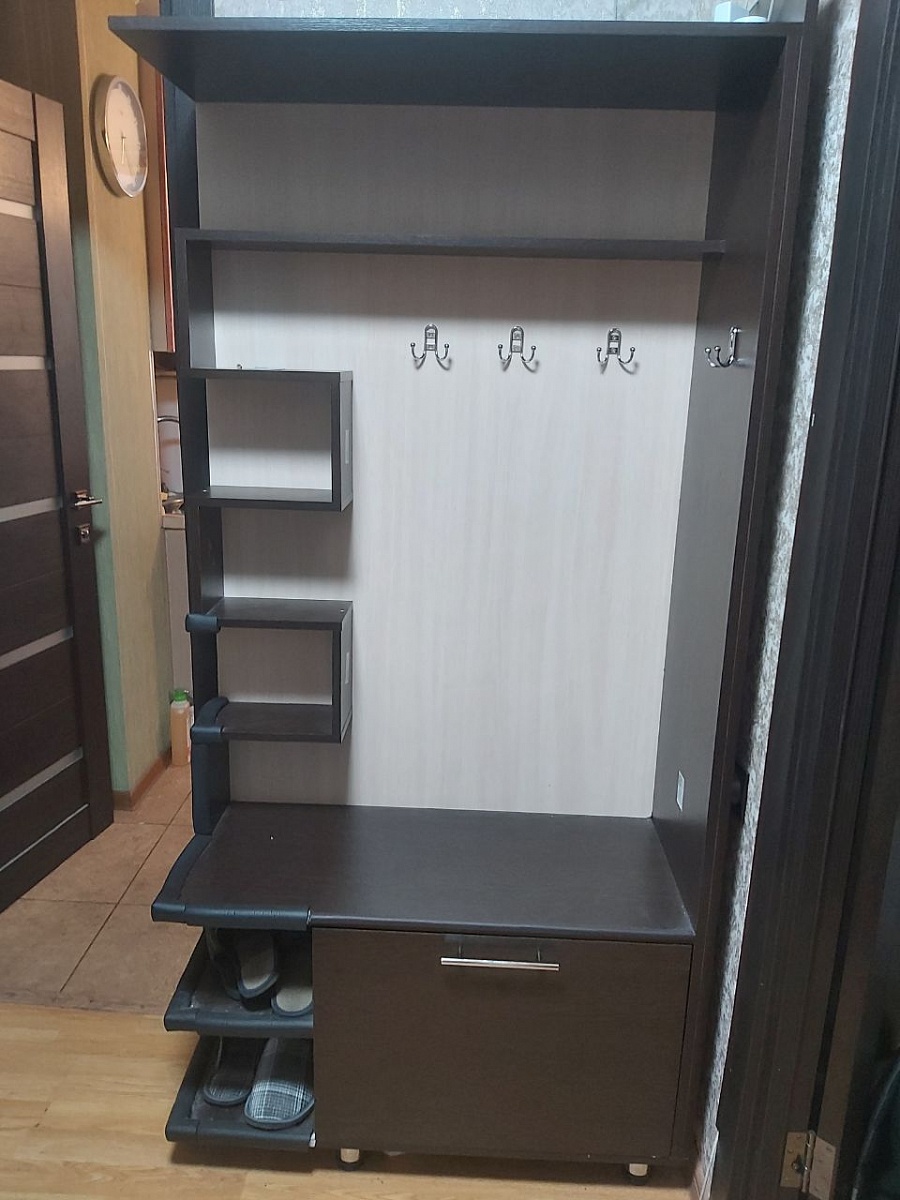 Заказ 00000388864  Тумба с вешалкой Феерия BMS (900х1940х400). Прихожую получил по акции мебель за 1 рубль, заказав угловой шкаф Локи, заказ №817688. Так как это подарок, выбрать цвет и размер нельзя, но прихожая вписалась идеально. Очень удобная и красивая.